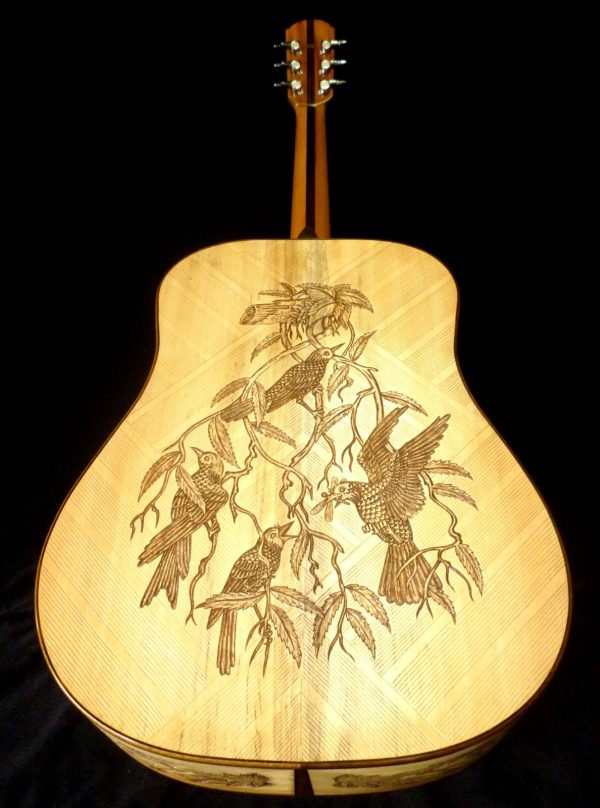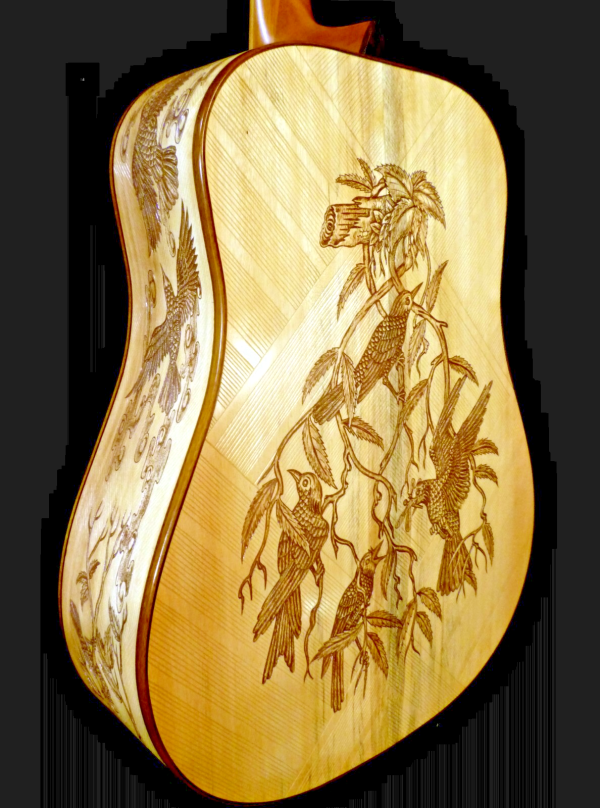 Blueberry Handmade Acoustic Guitar Dreadnought Birds Motif Built to Order in 90-Days