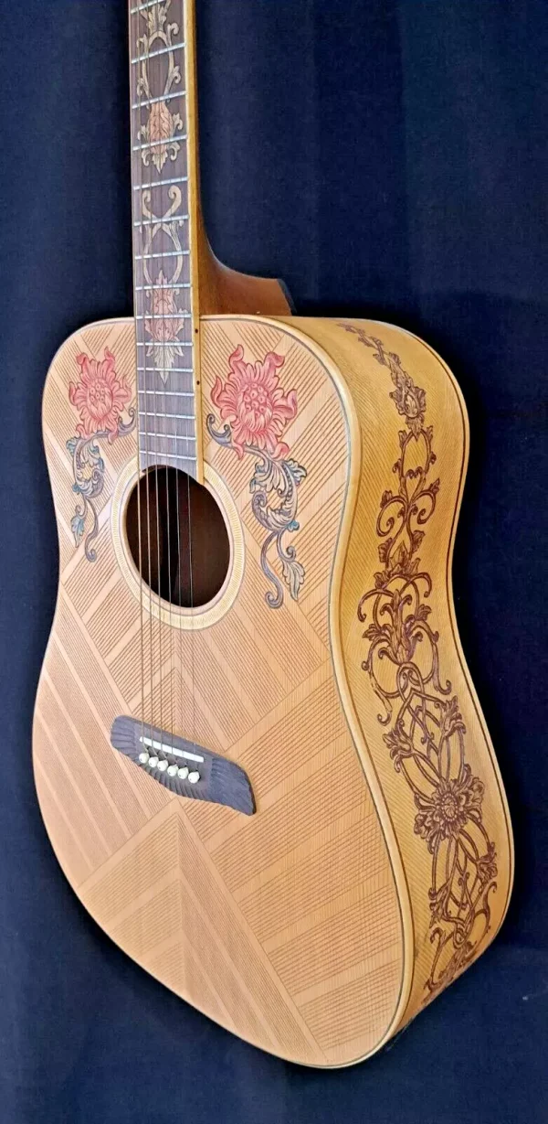 Blueberry Handmade Acoustic Dreadnought Guitar Floral Motif Pre-Order 90 Days