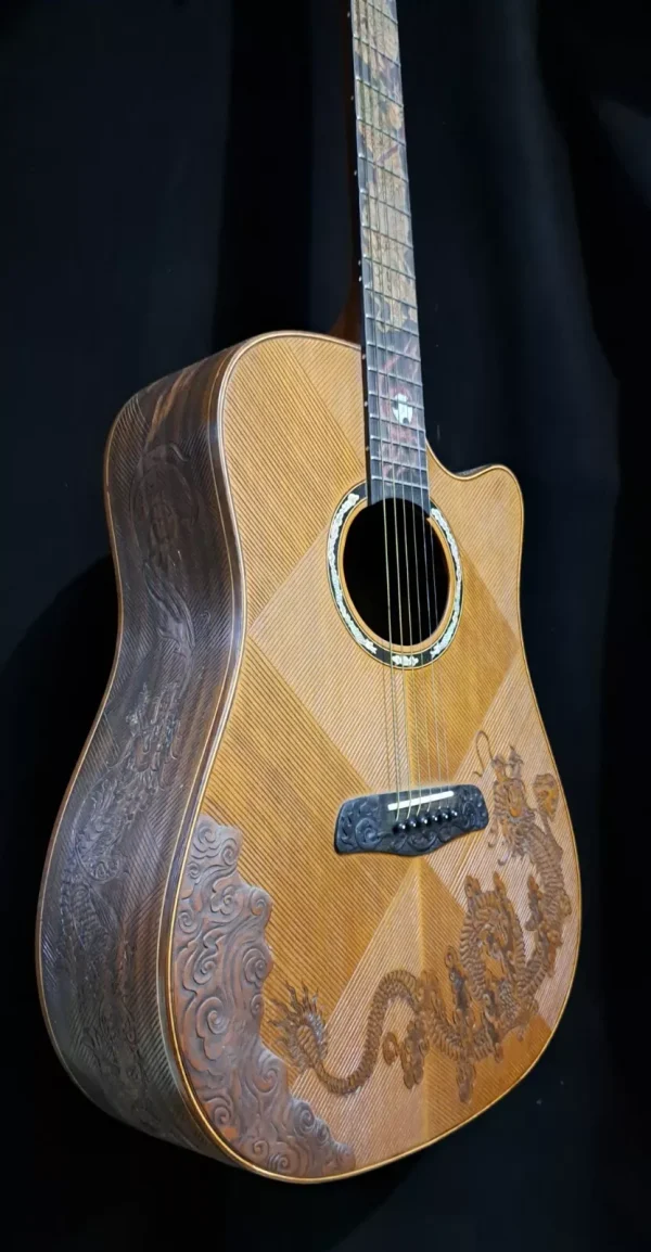 The guitar in these photos can be recreated for you based on the exact same materials and specifications as the original, or we can modify it as you’d like.
