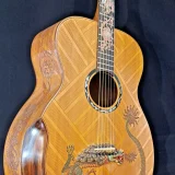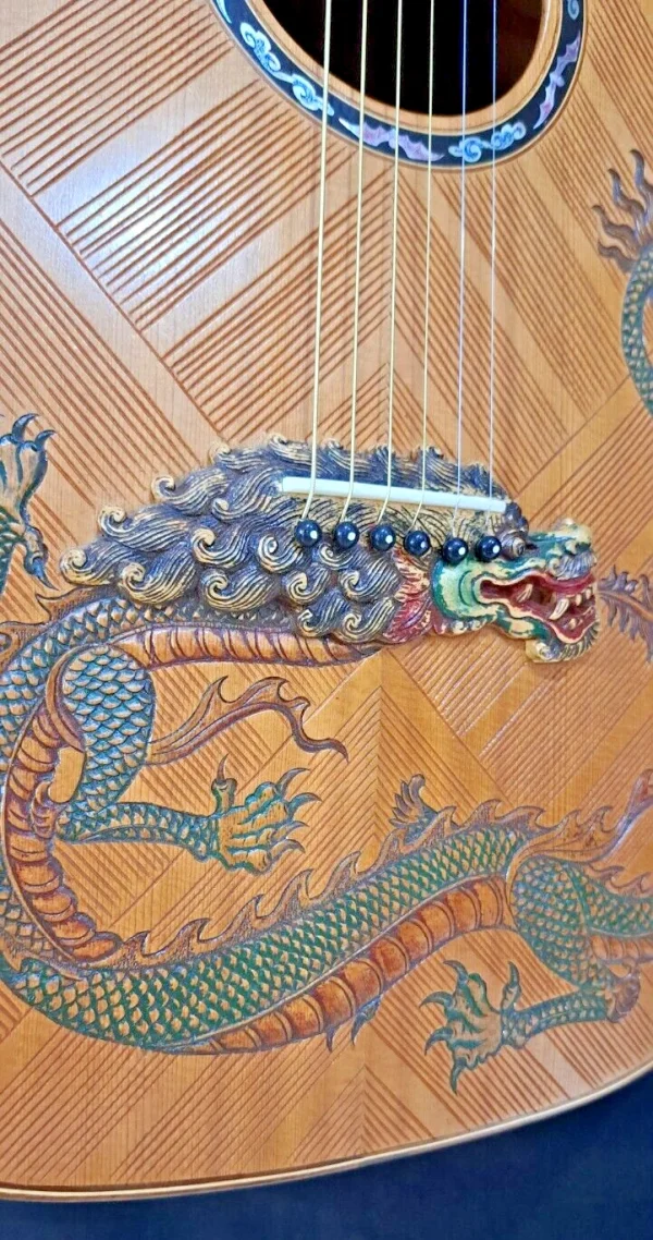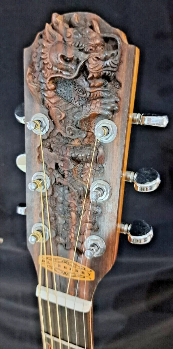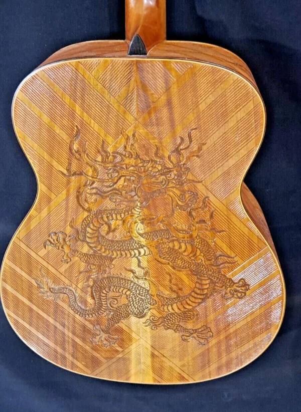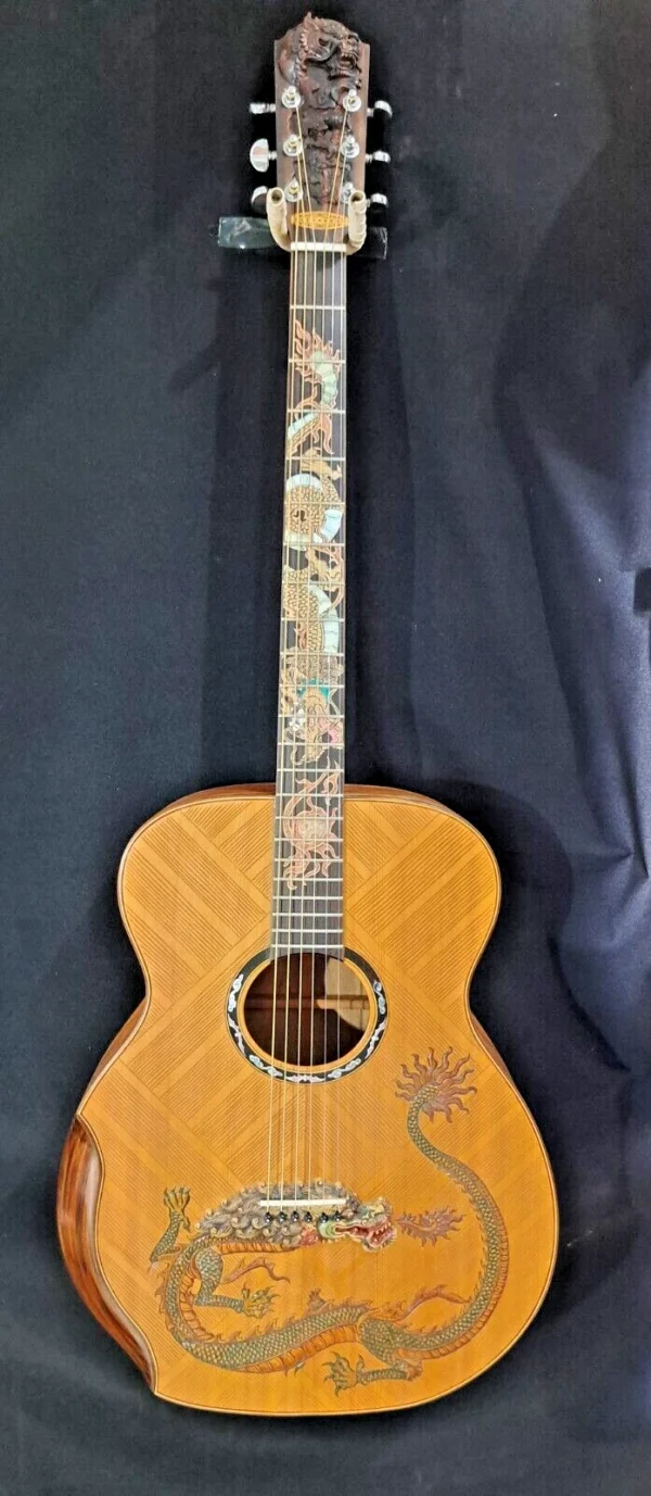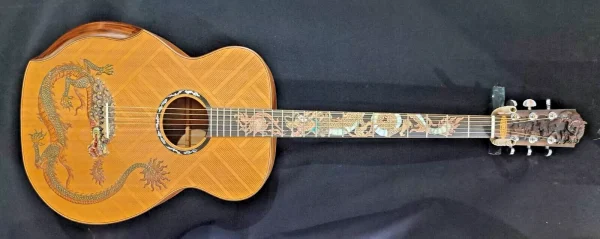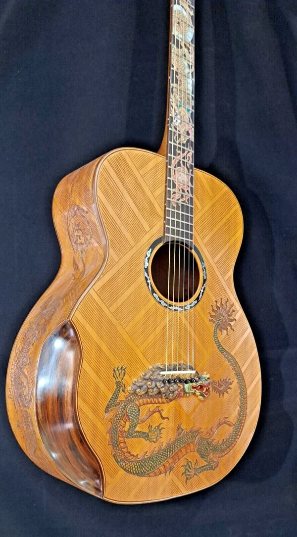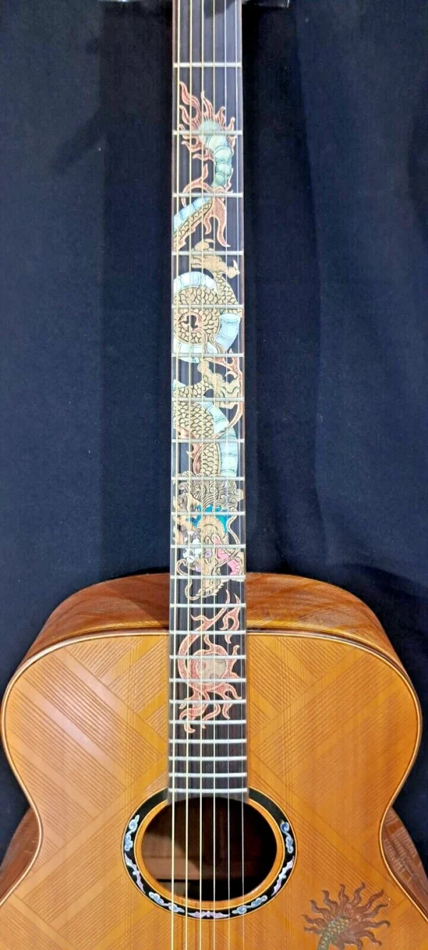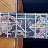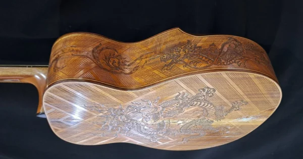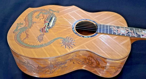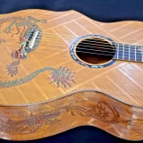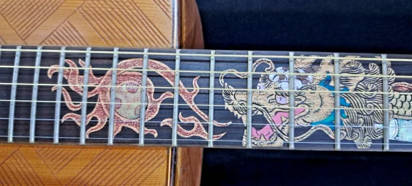 We can carve and inlay names, phrases and initials and we can even carve and inlay designs, faces and scenes from your photographs. Basically, if you can think of it we can get it onto your instrument.