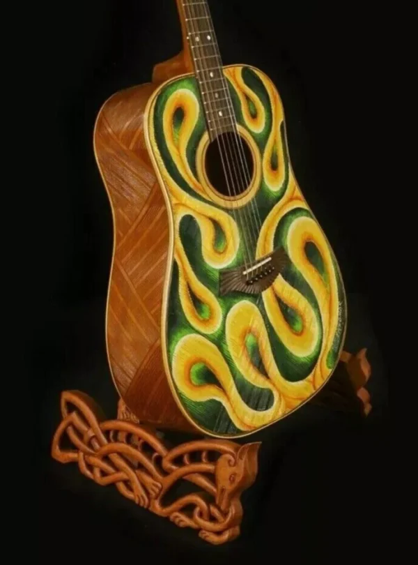 We can carve and inlay names, phrases and initials and we can even carve and inlay designs, faces and scenes from your photographs. Basically, if you can think of it we can get it onto your instrument.