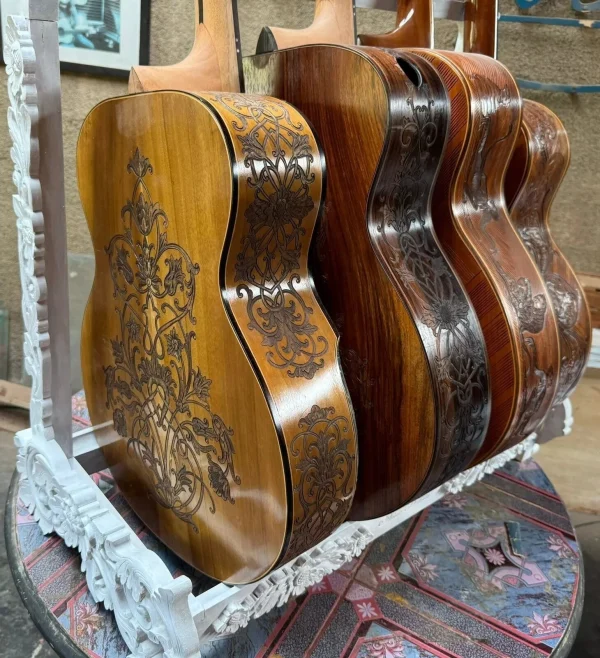 Blueberry Handmade Carved Wood Guitar Stand Floral Four Guitars Pre-Order 60 Day