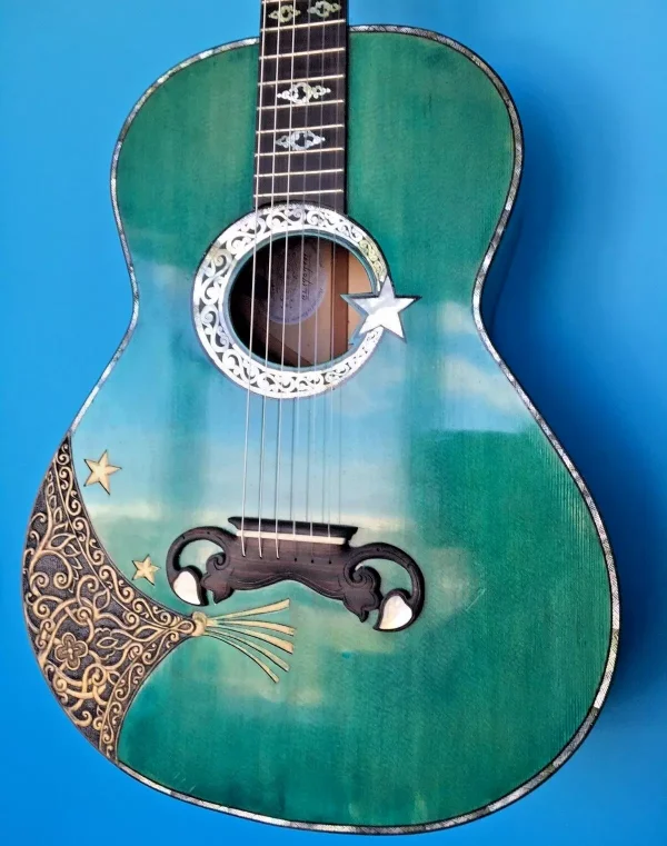Blueberry Handmade Classical Nylon String Guitar Caravan Motif – Built to Order in 90 Days