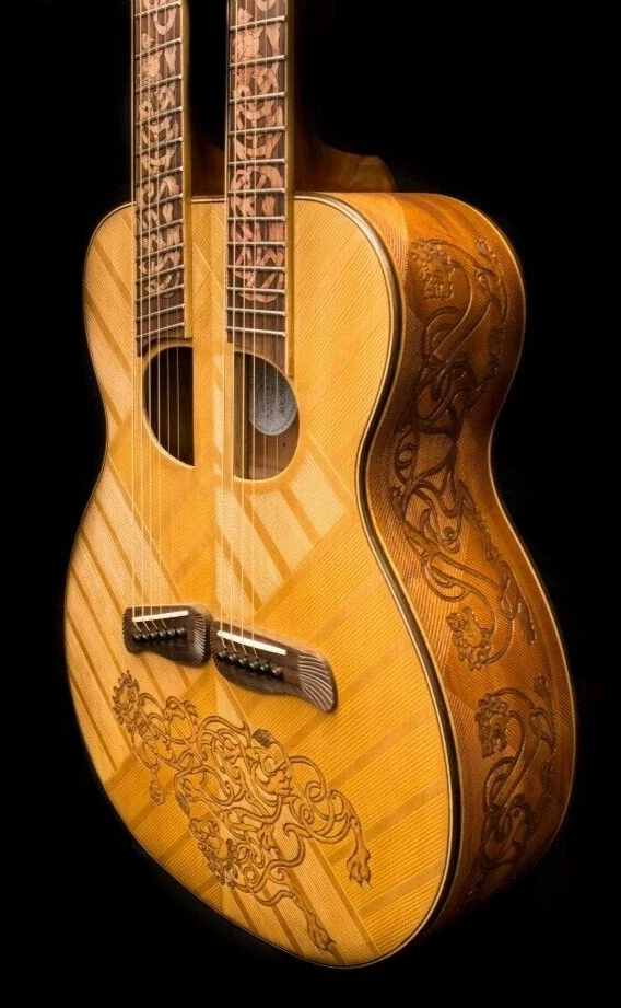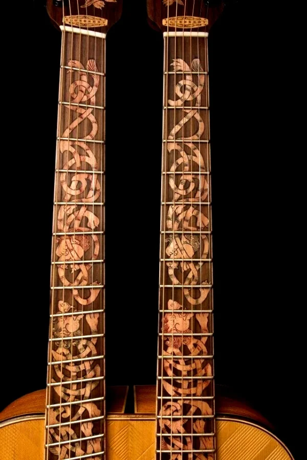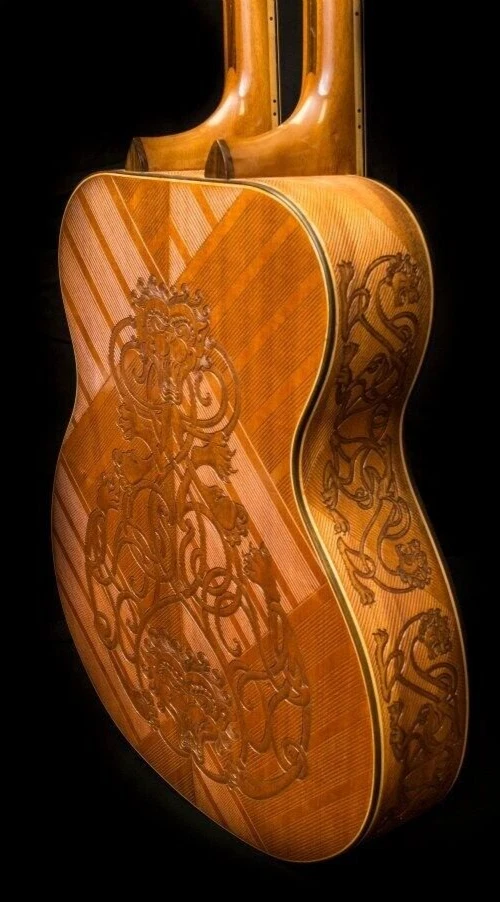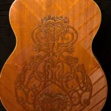 We can carve and inlay names, phrases and initials and we can even carve and inlay designs, faces and scenes from your photographs. Basically, if you can think of it we can get it onto your instrument.