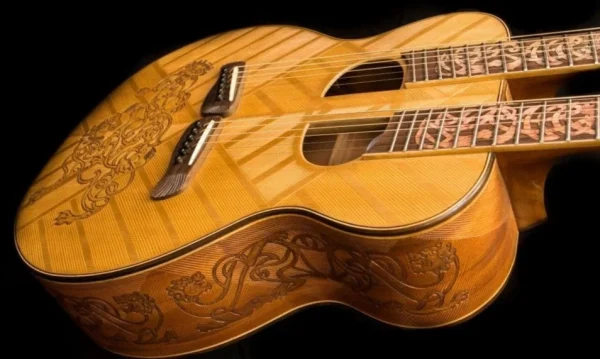 One of the necks on this doubleneck guitar is a Fanned Fret (otherwise known as Multi-Scale) neck.