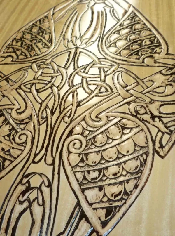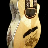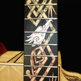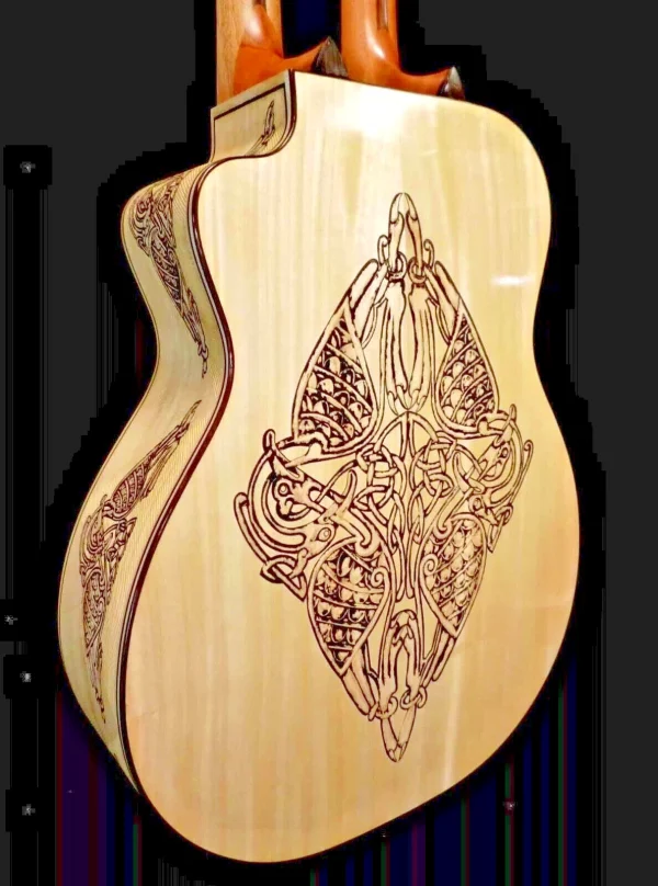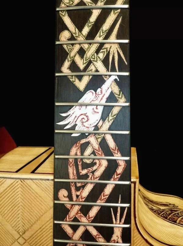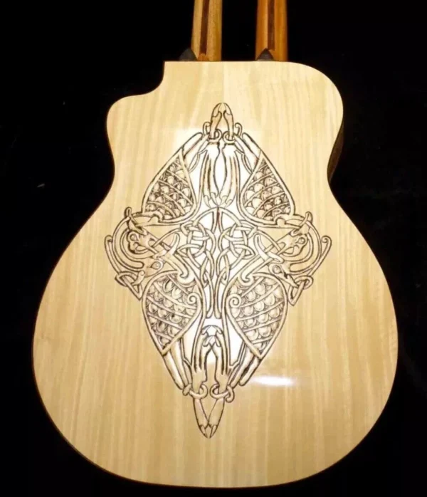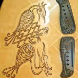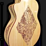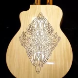 We can carve and inlay names, phrases and initials and we can even carve and inlay designs, faces and scenes from your photographs. Basically, if you can think of it we can get it onto your instrument.