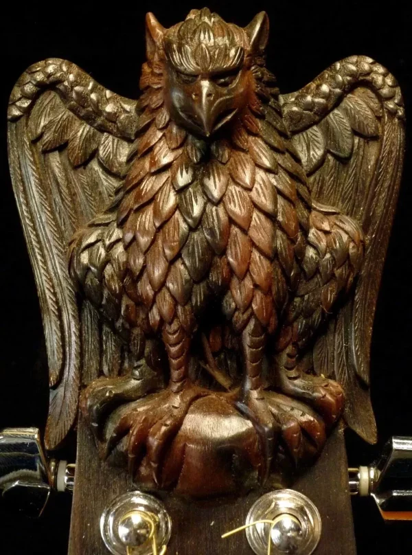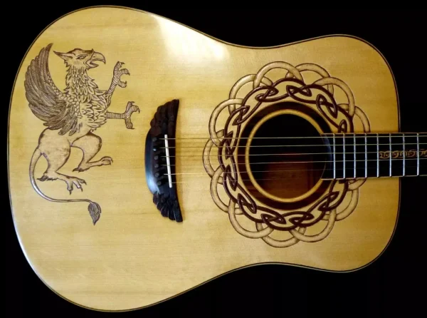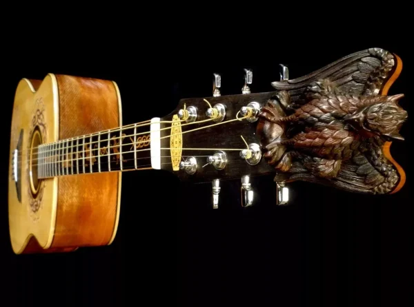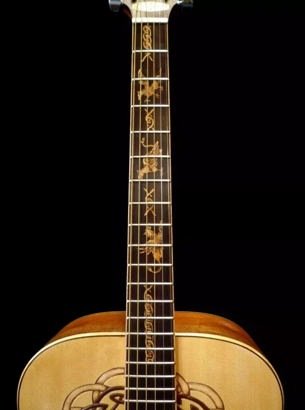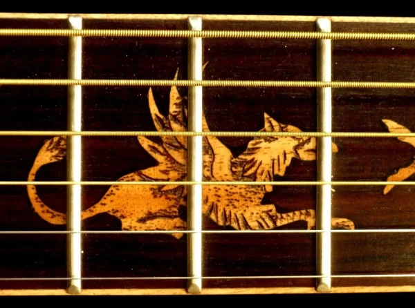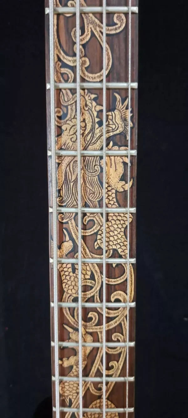We can carve and inlay names, phrases and initials and we can even carve and inlay designs, faces and scenes from your photographs. Basically, if you can think of it we can get it onto your instrument.