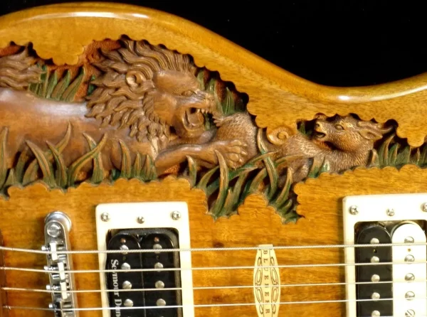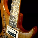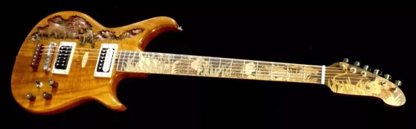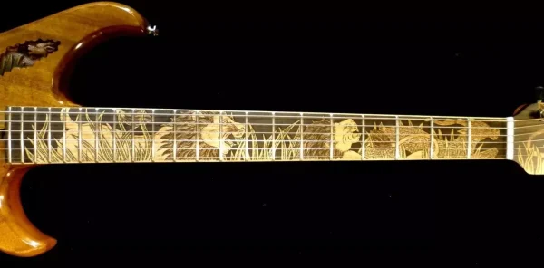 We can carve and inlay names, phrases and initials and we can even carve and inlay designs, faces and scenes from your photographs. Basically, if you can think of it we can get it onto your instrument.