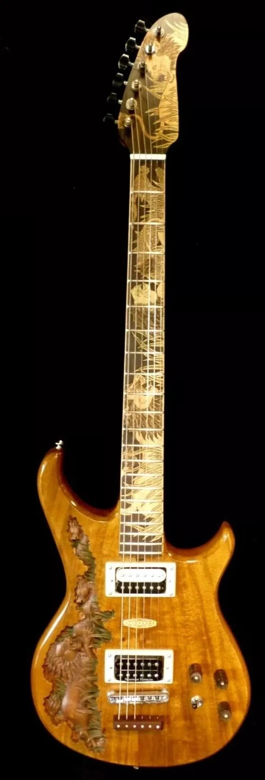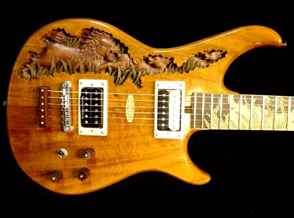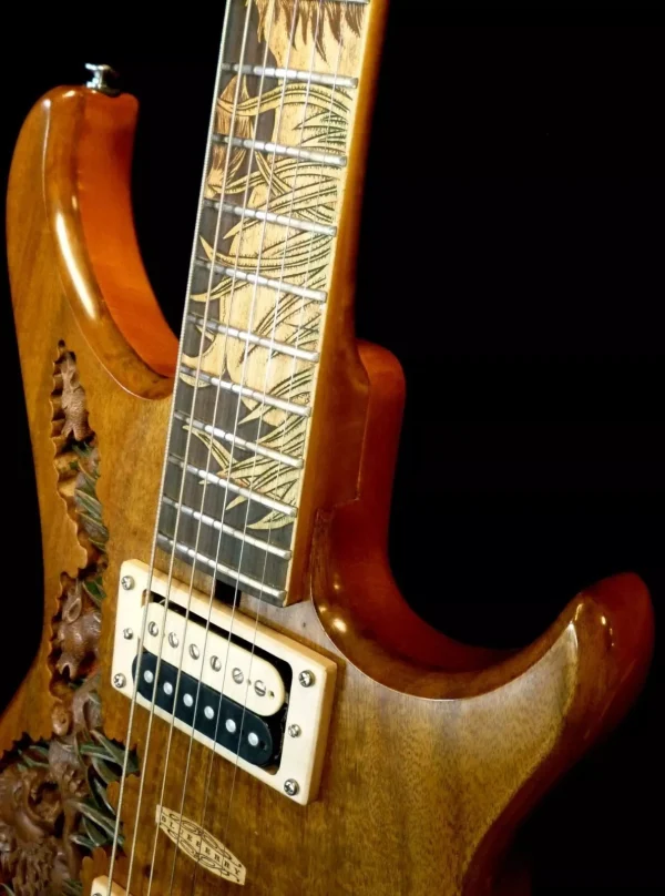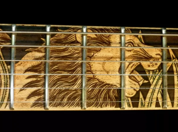 We can carve and inlay names, phrases and initials and we can even carve and inlay designs, faces and scenes from your photographs. Basically, if you can think of it we can get it onto your instrument.
