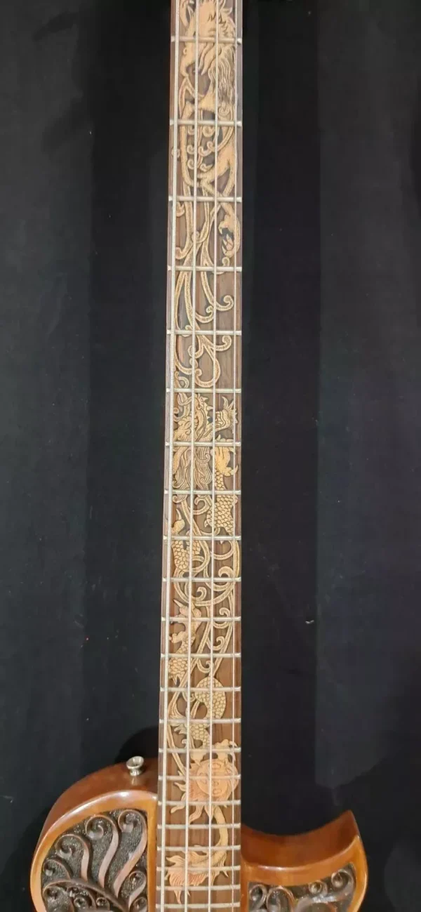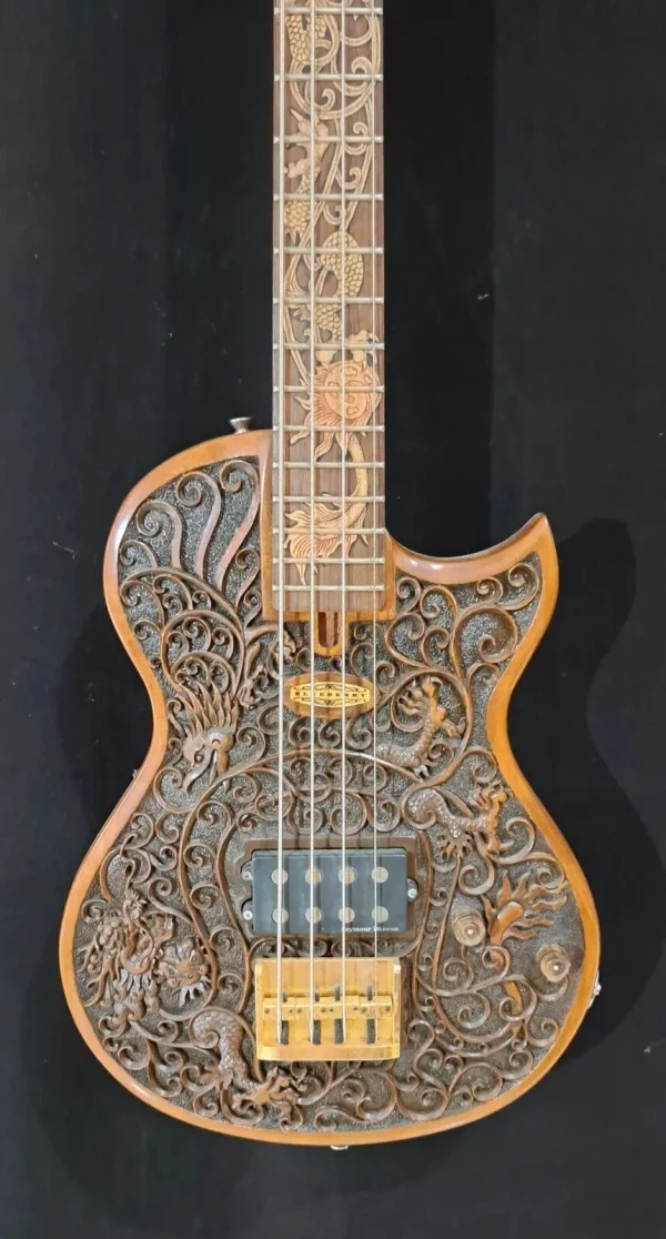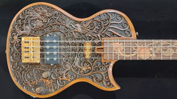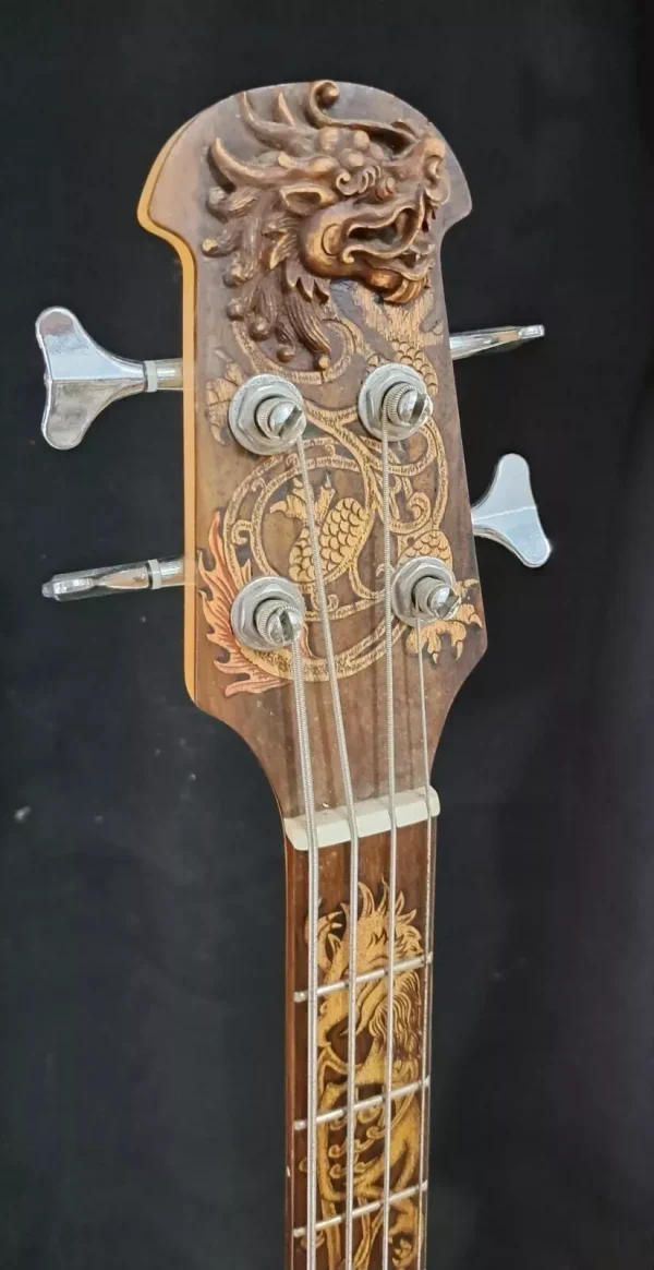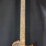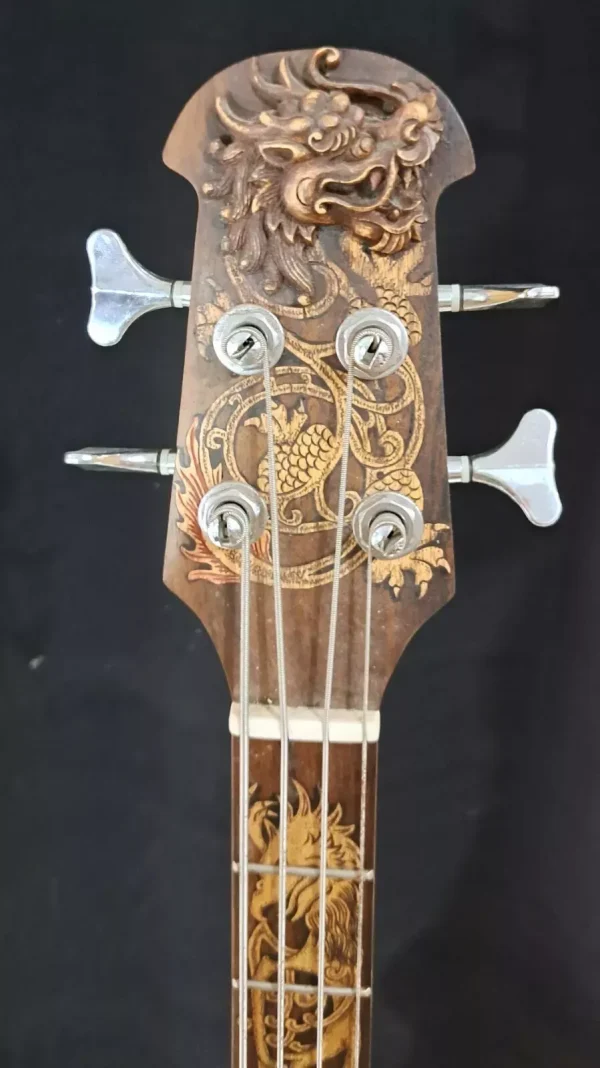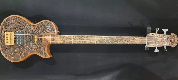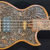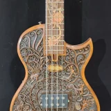 We can carve and inlay names, phrases and initials and we can even carve and inlay designs, faces and scenes from your photographs. Basically, if you can think of it we can get it onto your instrument.