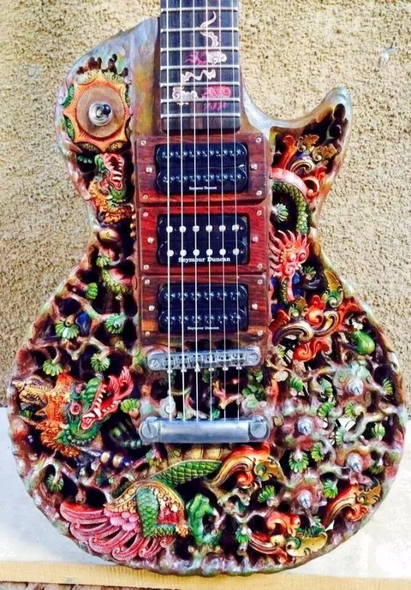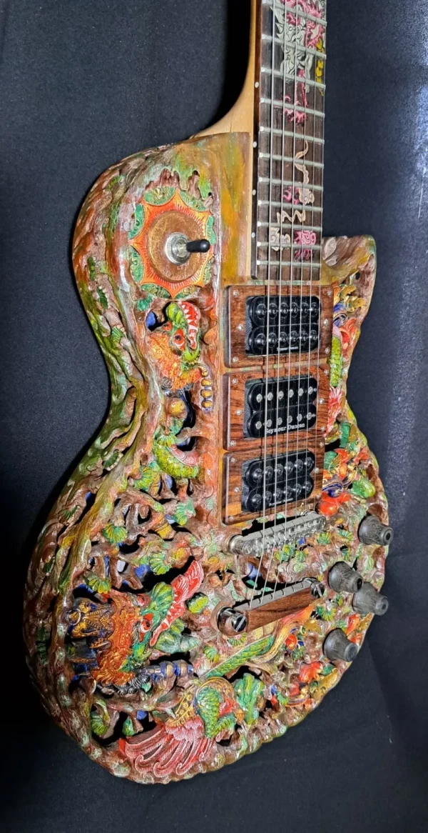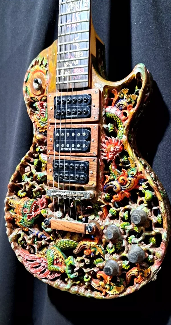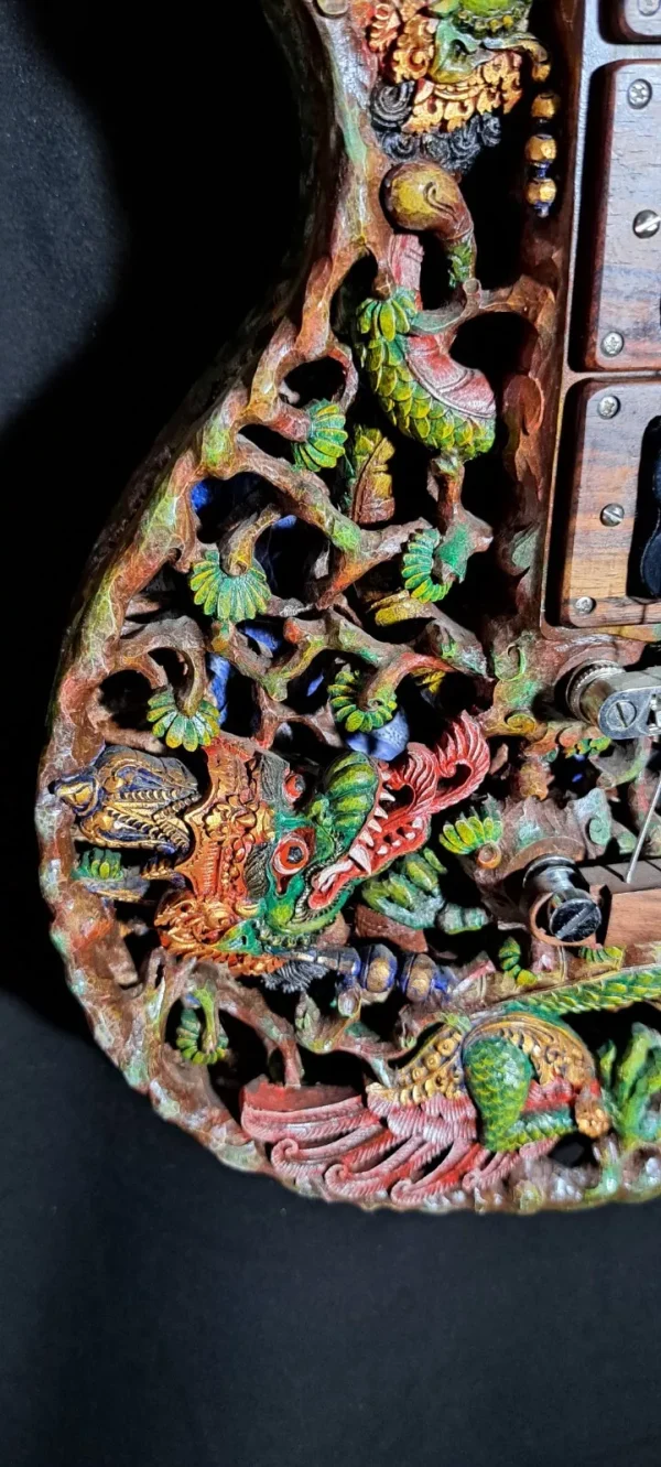 American luthier and educator George Morris and Balinese woodcarver Wayan Tuges brought together two great craft traditions, combining the best of Western technology with the best woodcarvers in the world.