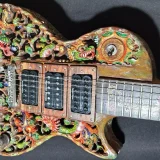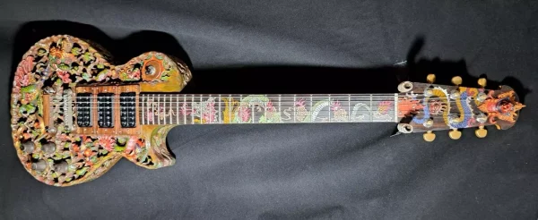 We can carve and inlay names, phrases and initials and we can even carve and inlay designs, faces and scenes from your photographs. Basically, if you can think of it we can get it onto your instrument.