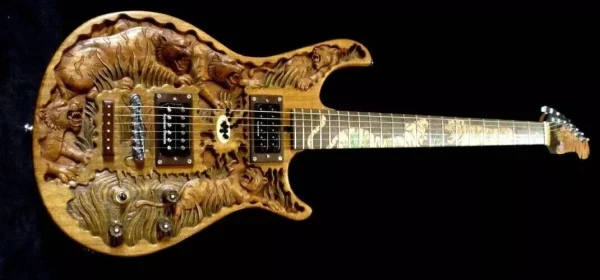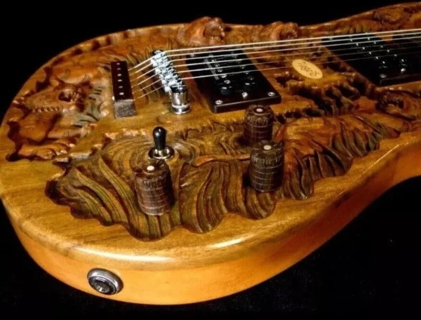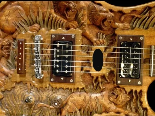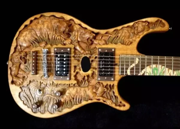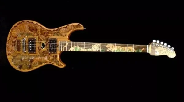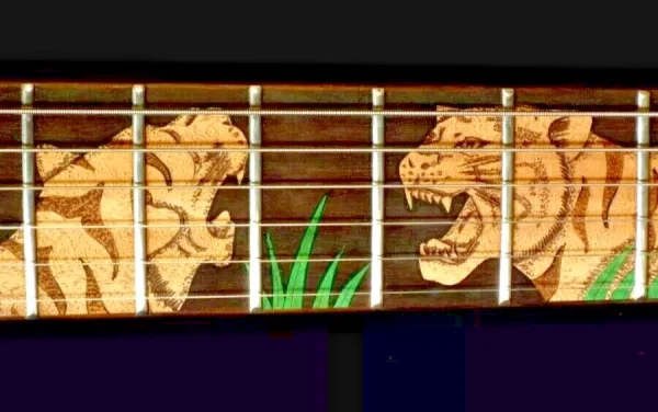 We can carve and inlay names, phrases and initials and we can even carve and inlay designs, faces and scenes from your photographs. Basically, if you can think of it we can get it onto your instrument.