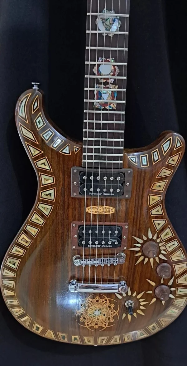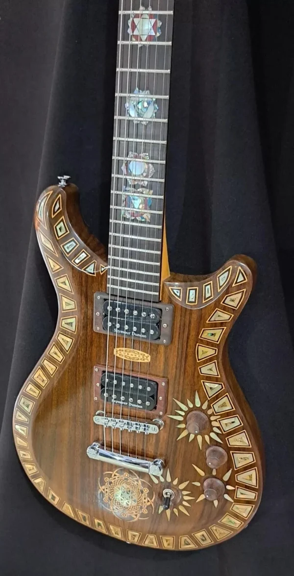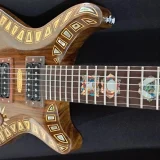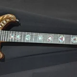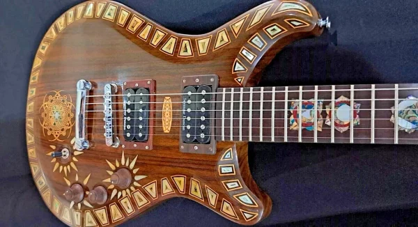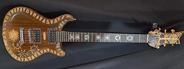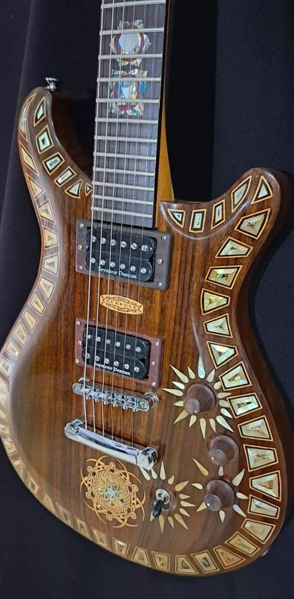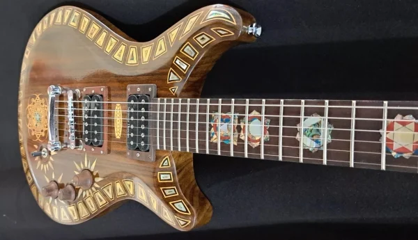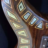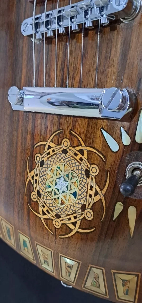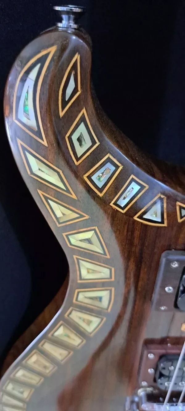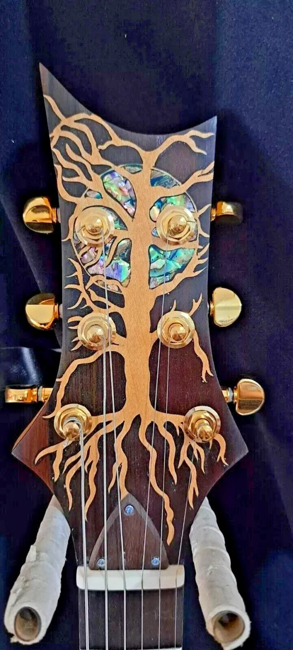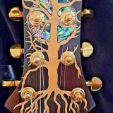 We can carve and inlay names, phrases and initials and we can even carve and inlay designs, faces and scenes from your photographs. Basically, if you can think of it we can get it onto your instrument.