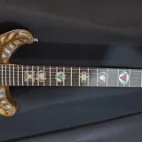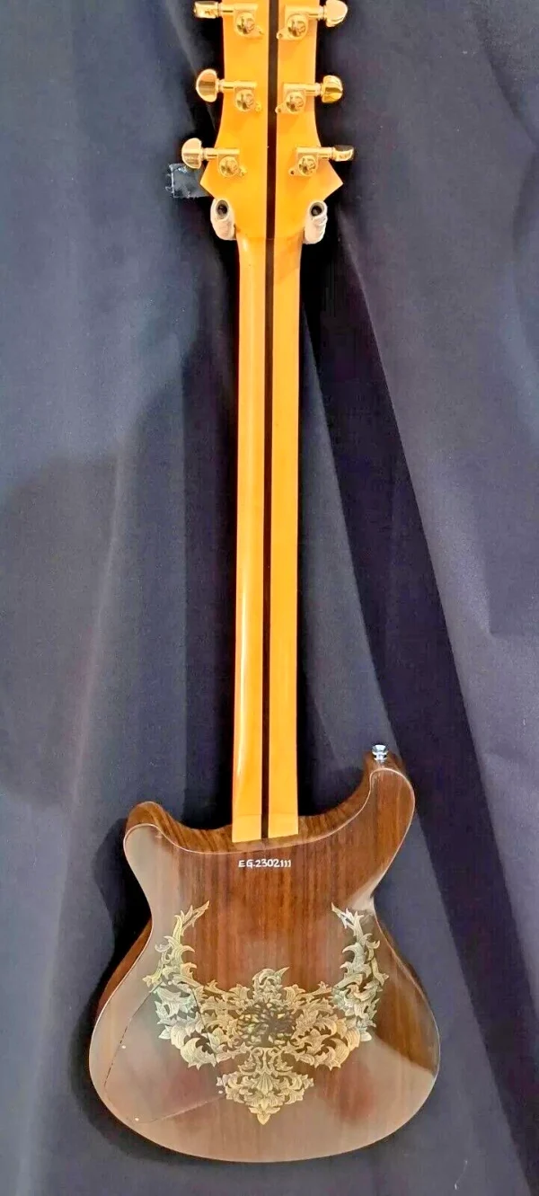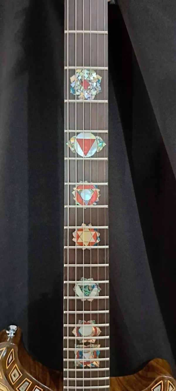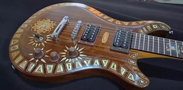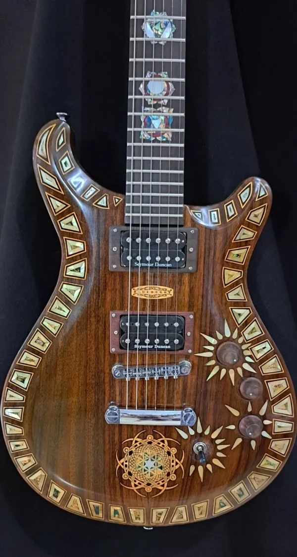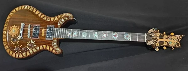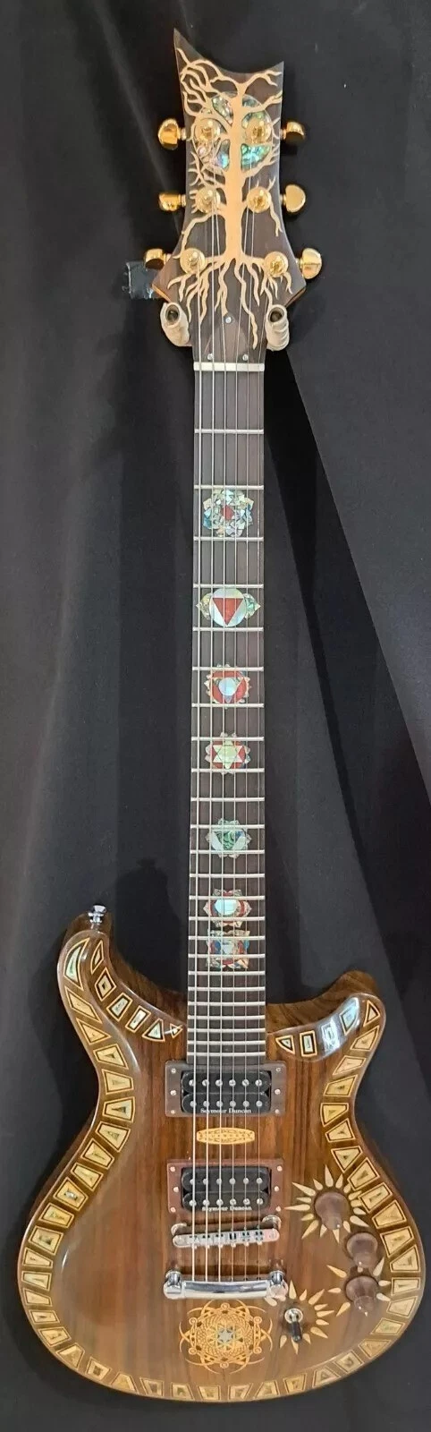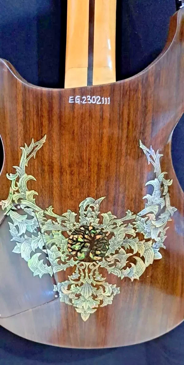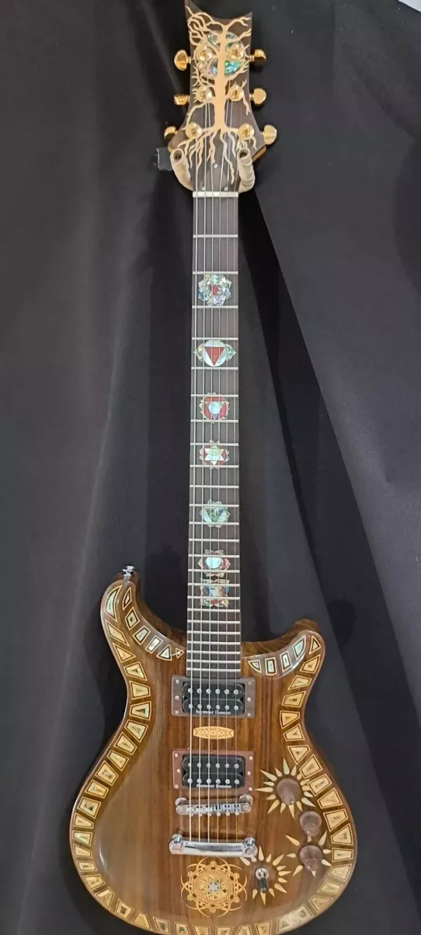 We can carve and inlay names, phrases and initials and we can even carve and inlay designs, faces and scenes from your photographs. Basically, if you can think of it we can get it onto your instrument.