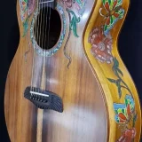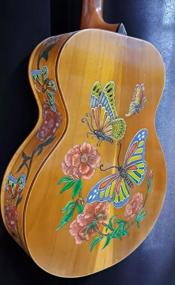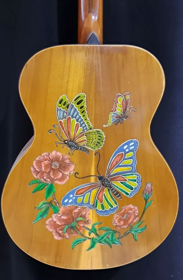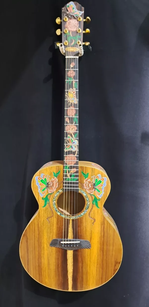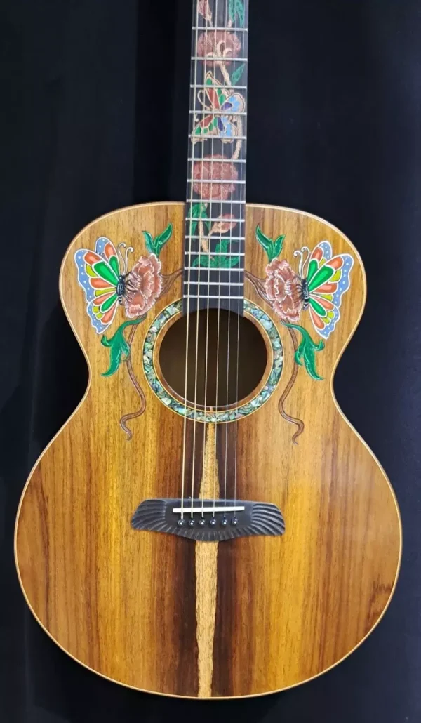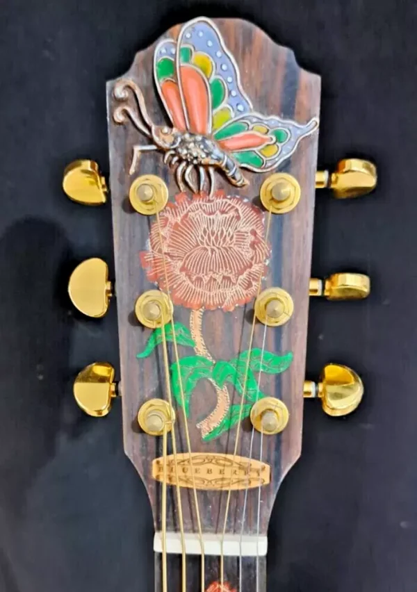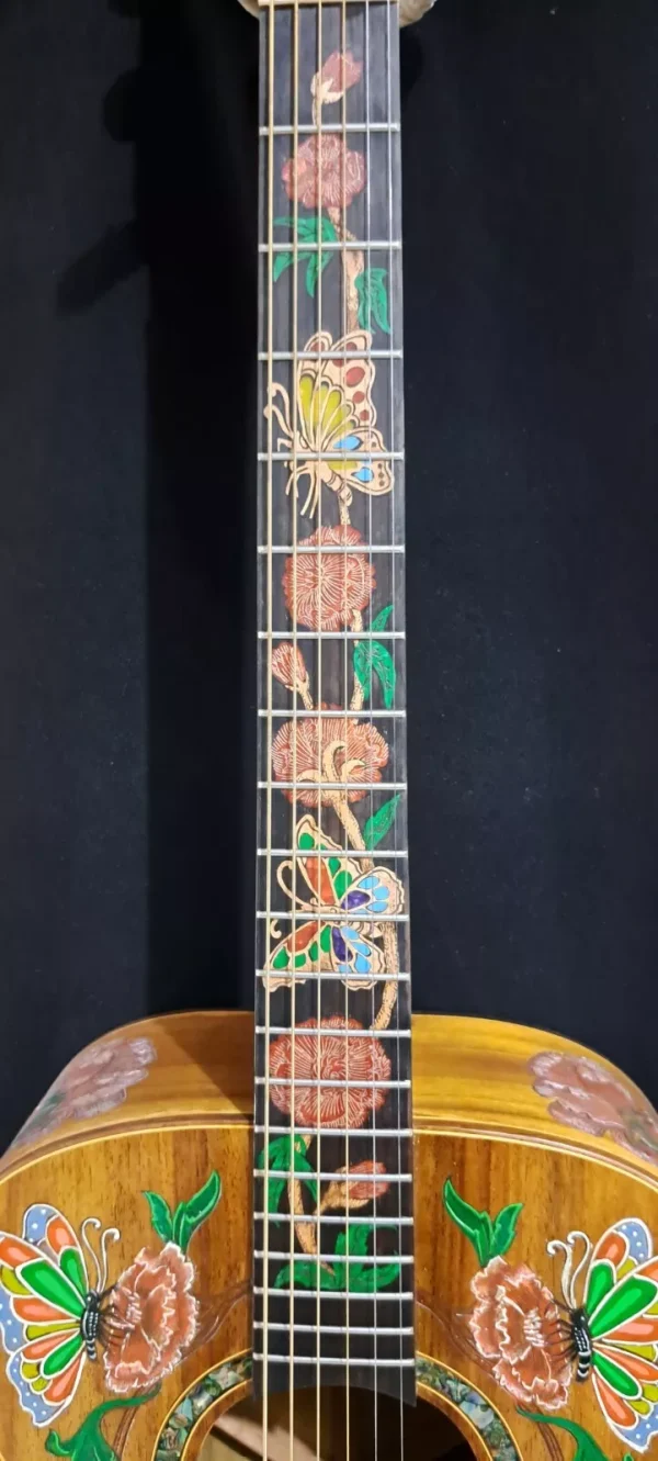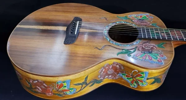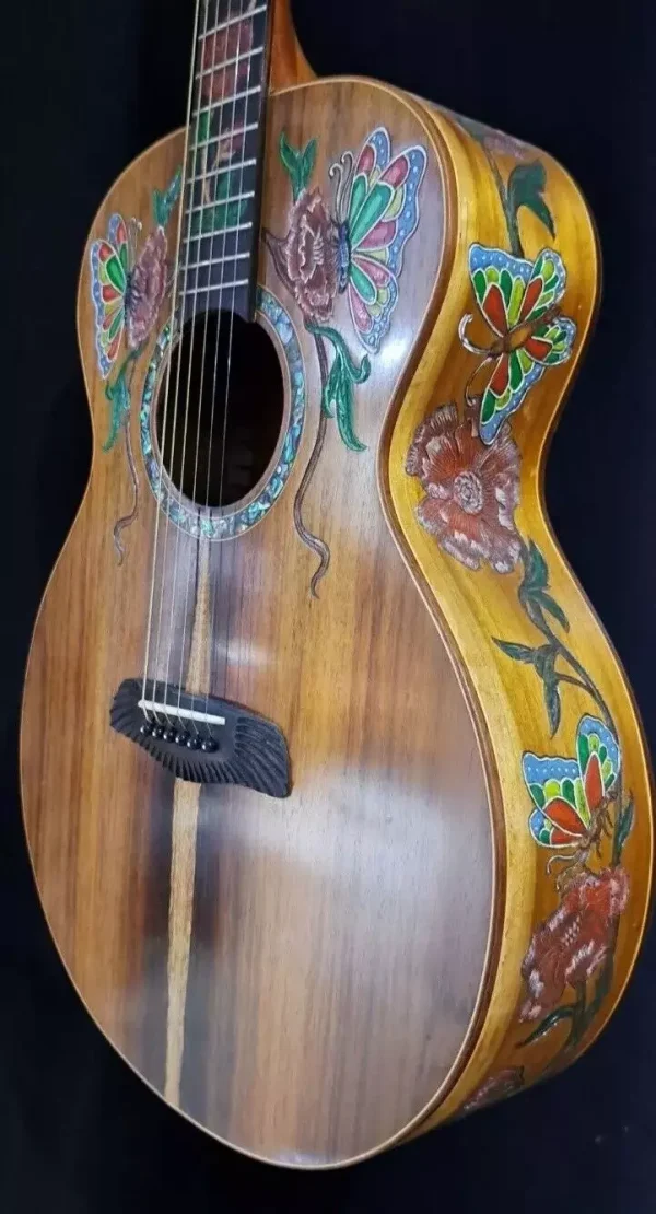 We can carve and inlay names, phrases and initials and we can even carve and inlay designs, faces and scenes from your photographs. Basically, if you can think of it we can get it onto your instrument.