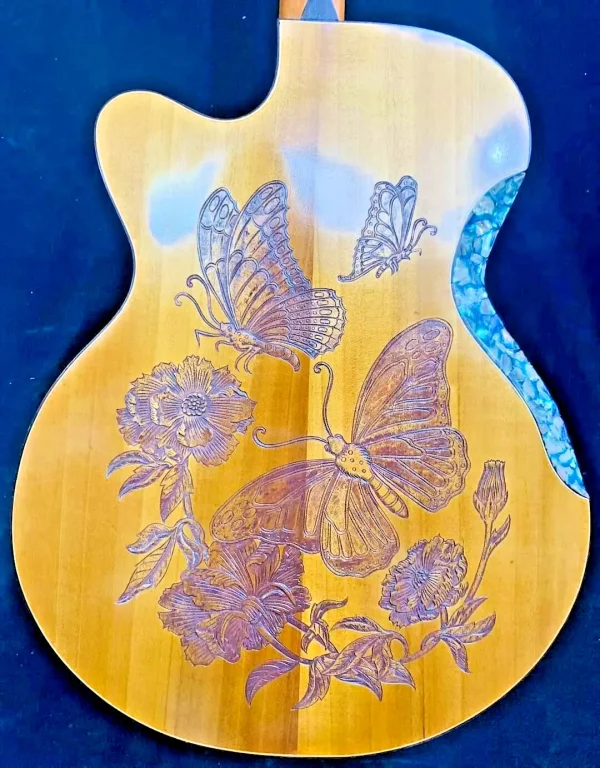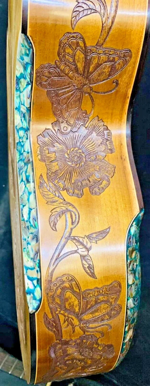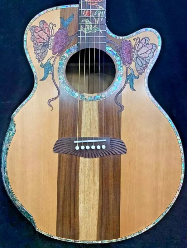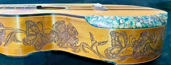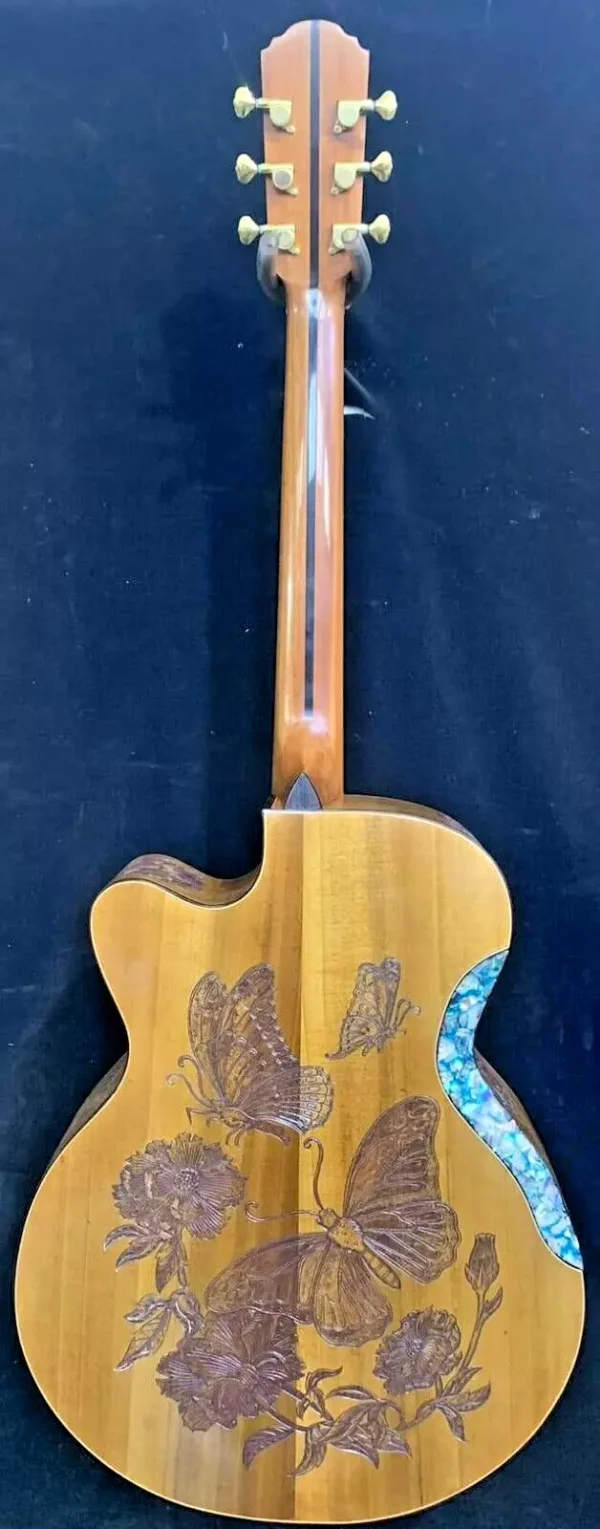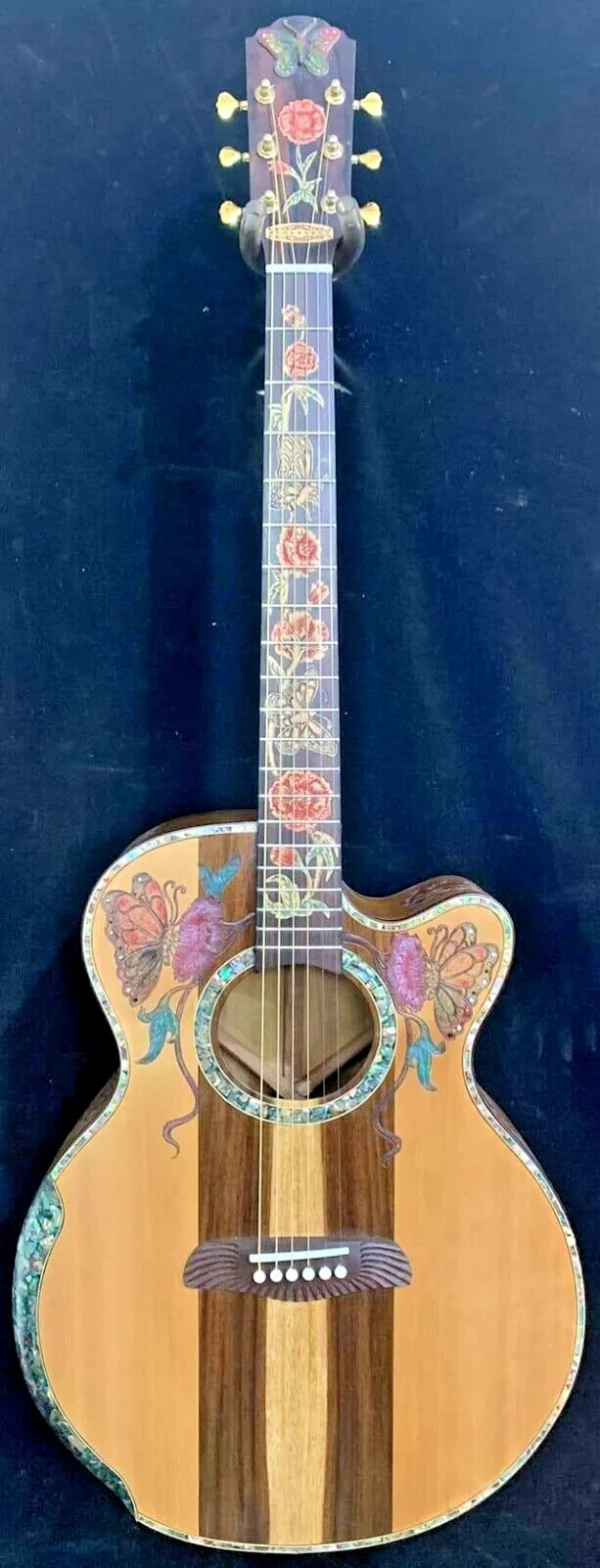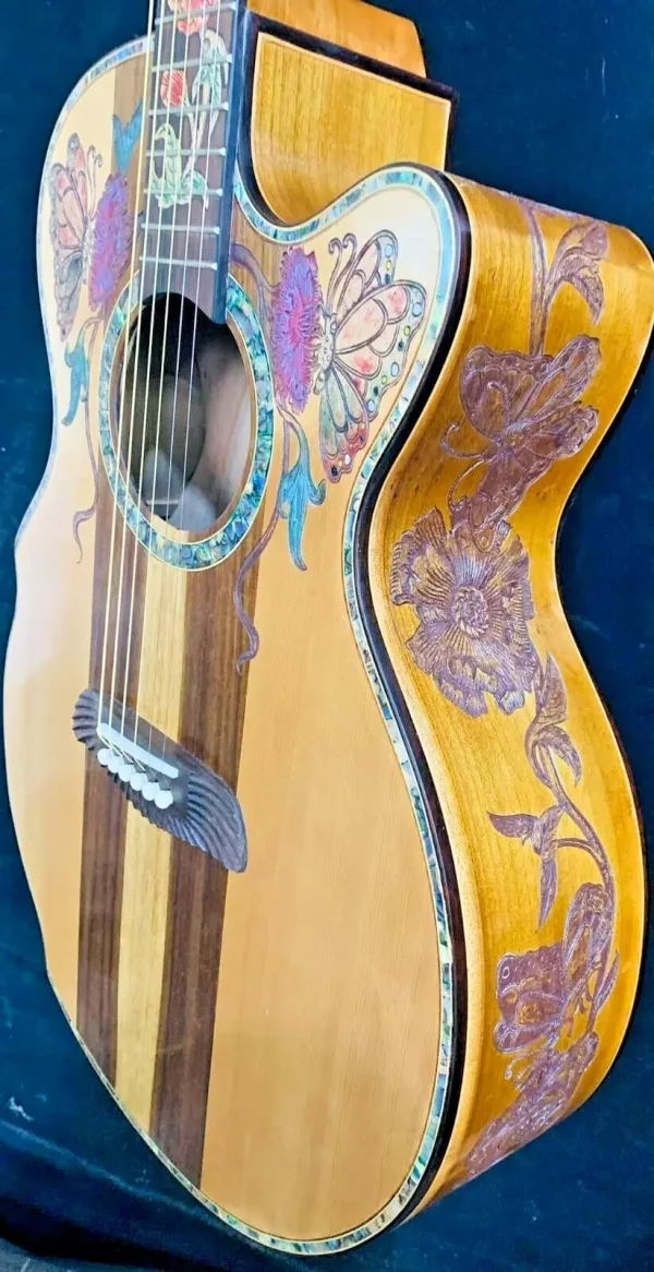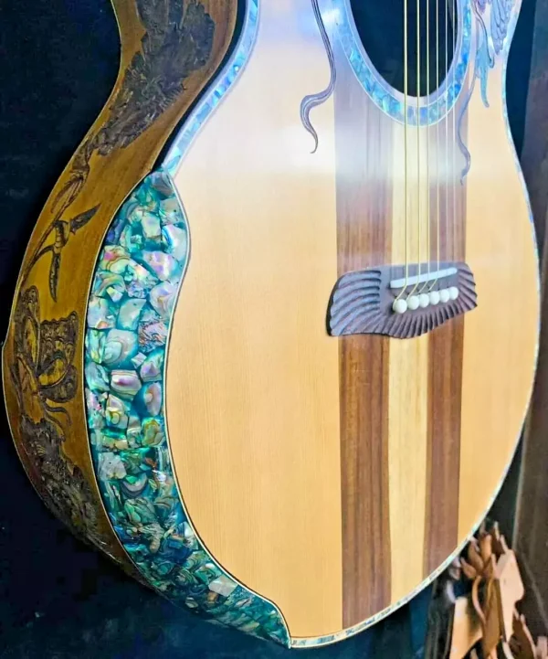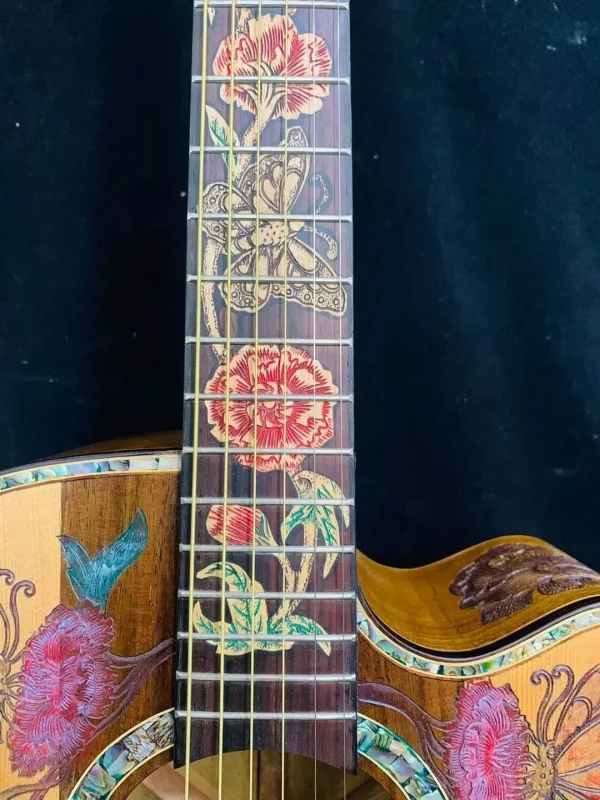 As these are “Special Order / Custom Order” Guitars, we can also build the same motif as a different model – this means that if you like this motif but would like to order it in a different size we can build it as a Classical Guitar, Dreadnought Guitar, Jumbo Guitar, Parlor Guitar, 12 String guitar etc. at no cost to you – just specify what you’d like on your note to us when you pay.