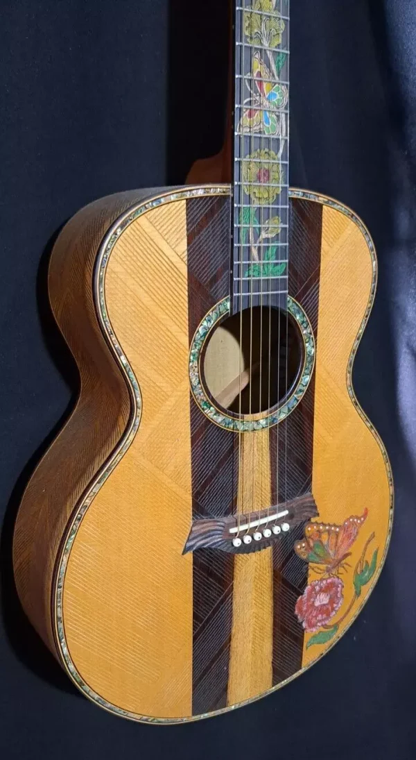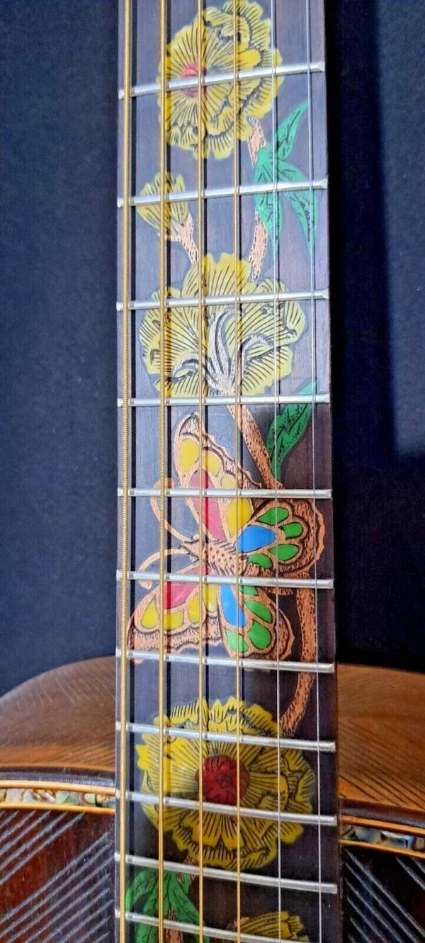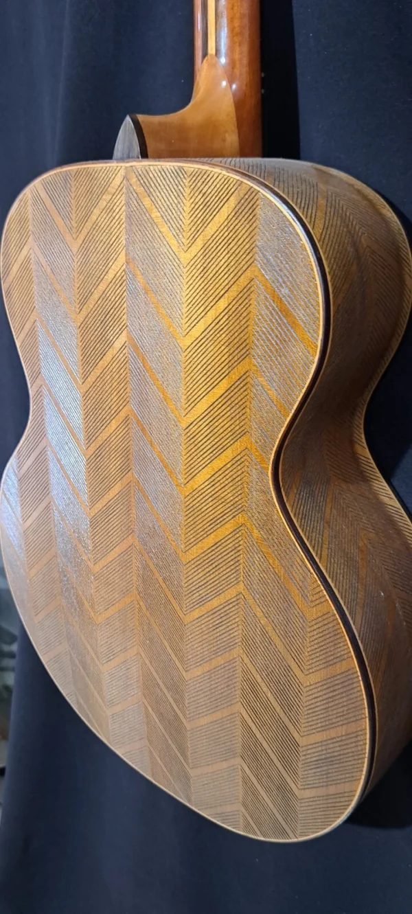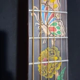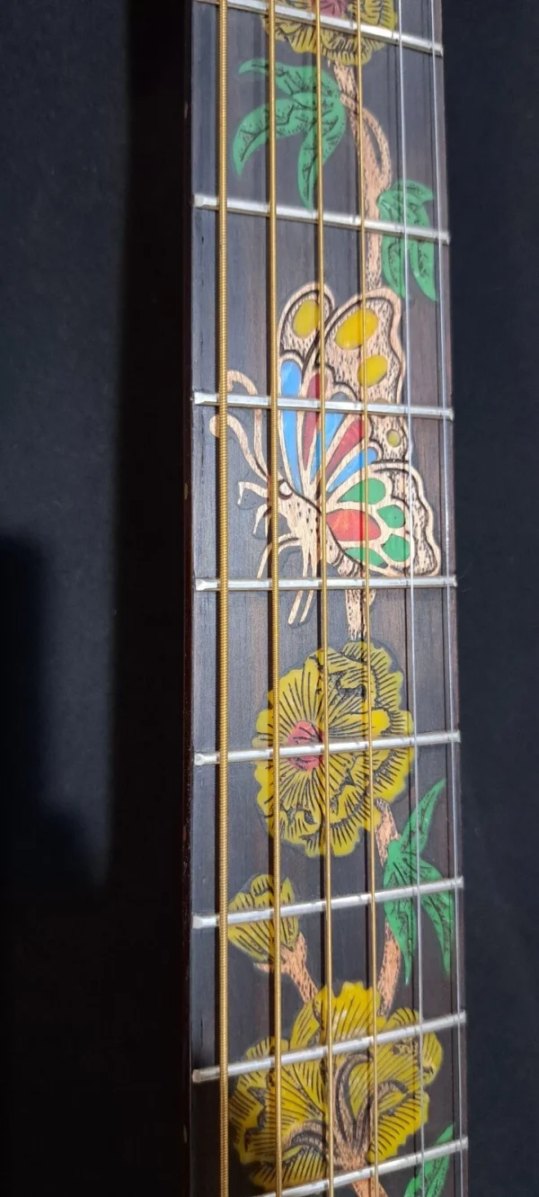 We can carve and inlay names, phrases and initials and we can even carve and inlay designs, faces and scenes from your photographs. Basically, if you can think of it we can get it onto your instrument.