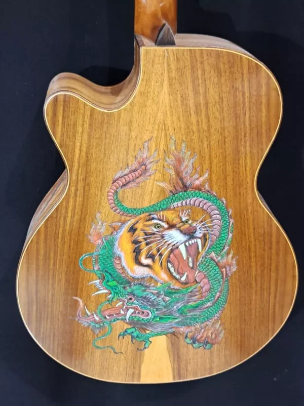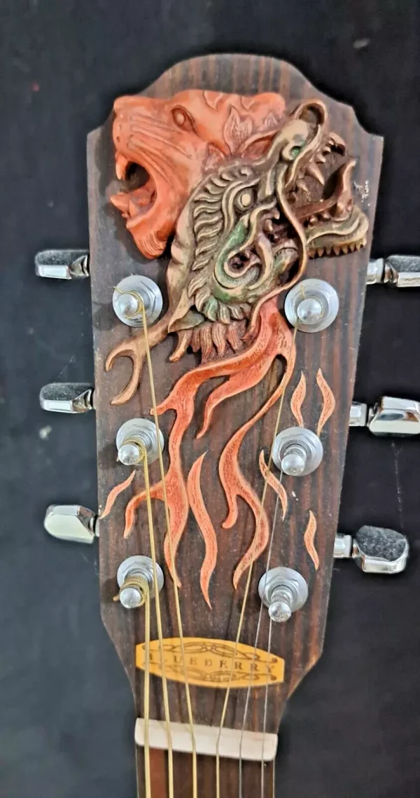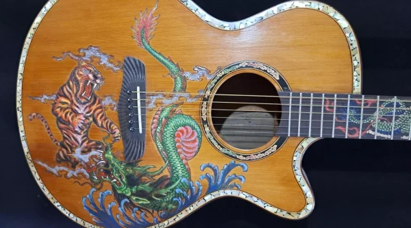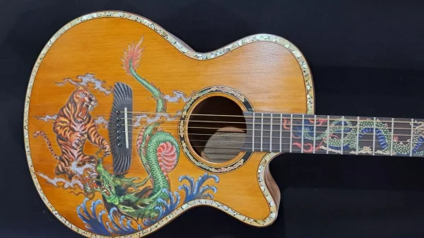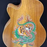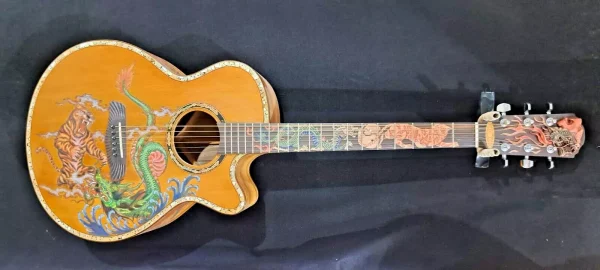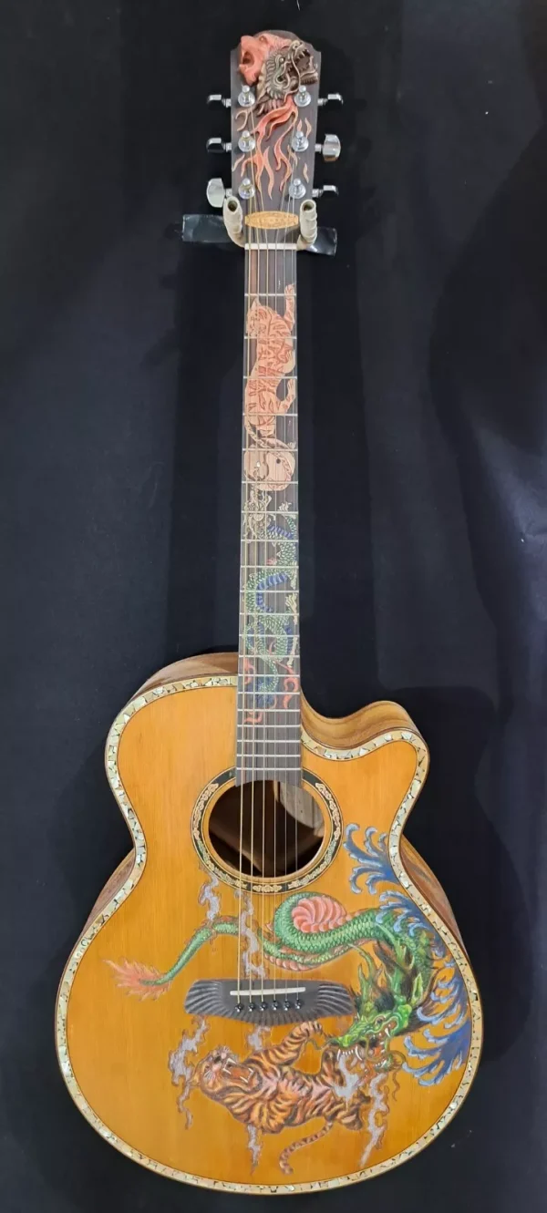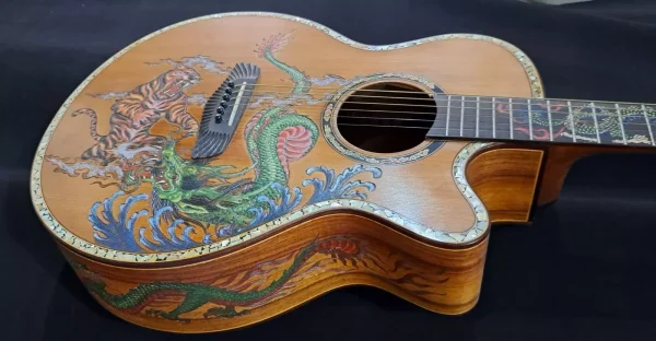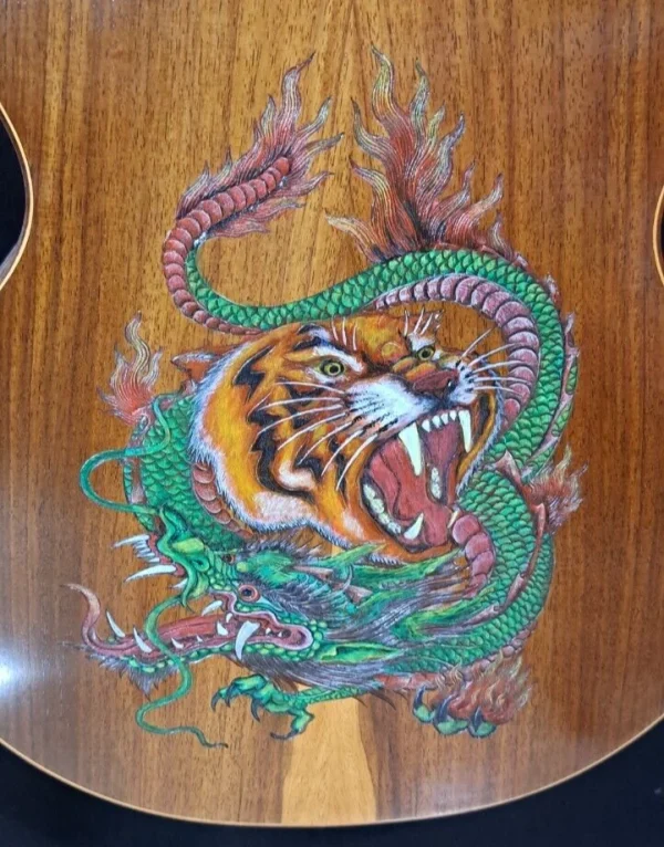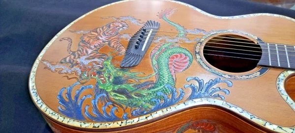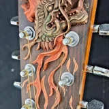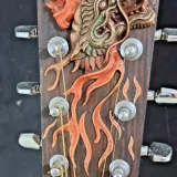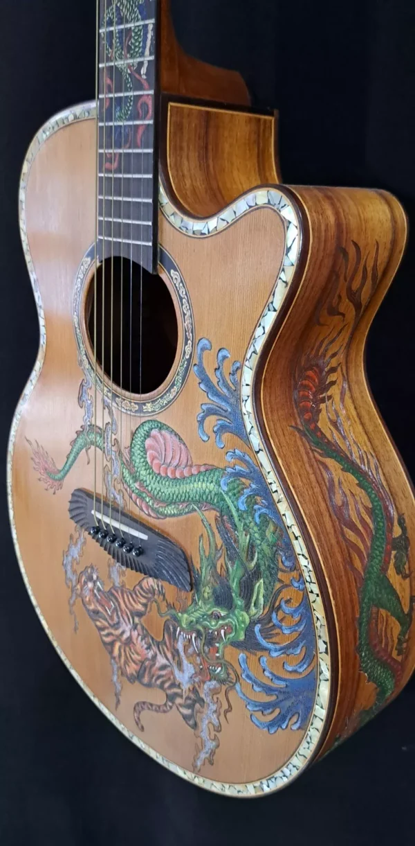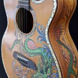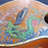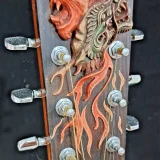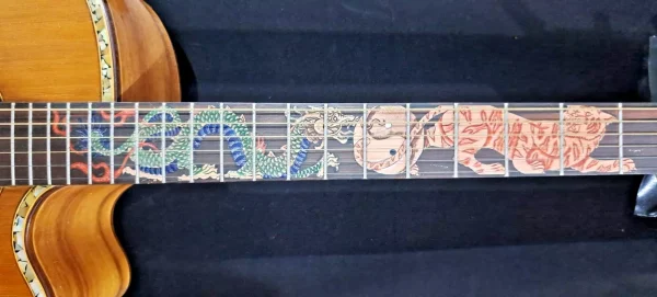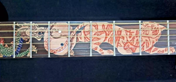 We can carve and inlay names, phrases and initials and we can even carve and inlay designs, faces and scenes from your photographs. Basically, if you can think of it we can get it onto your instrument.