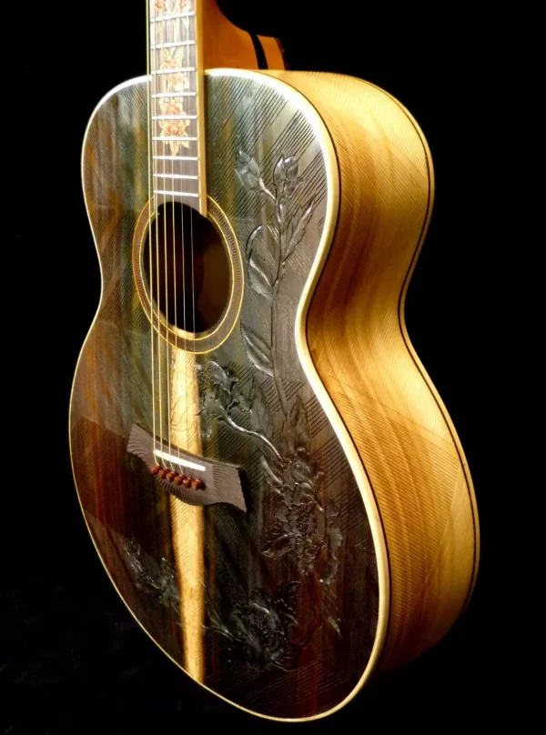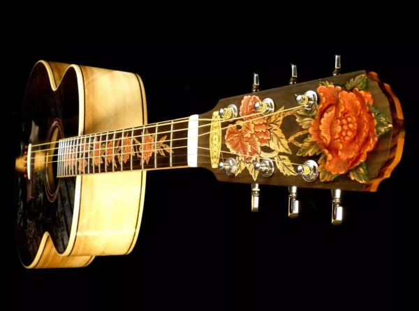 Blueberry Handmade Grand Concert Acoustic Guitar Floral Motif – Built to Order 90 Day Delivery