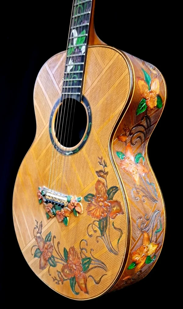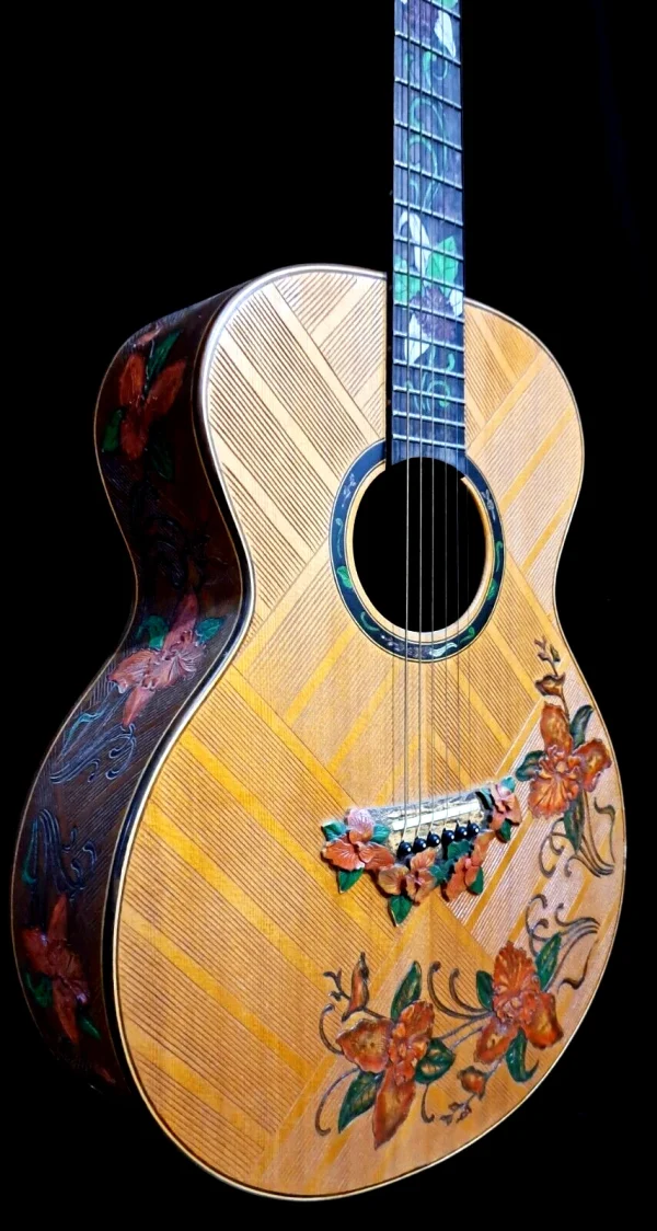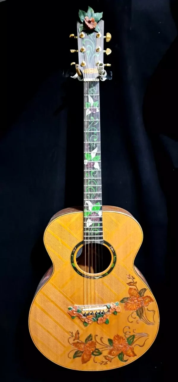 Blueberry Handmade Grand Concert Acoustic Guitar Floral Motif – Preorder 90 Days
