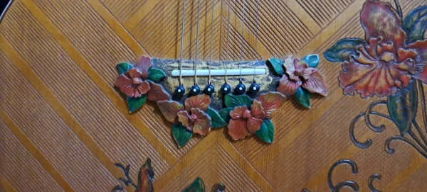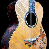 We can carve and inlay names, phrases and initials and we can even carve and inlay designs, faces and scenes from your photographs. Basically, if you can think of it we can get it onto your instrument.