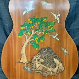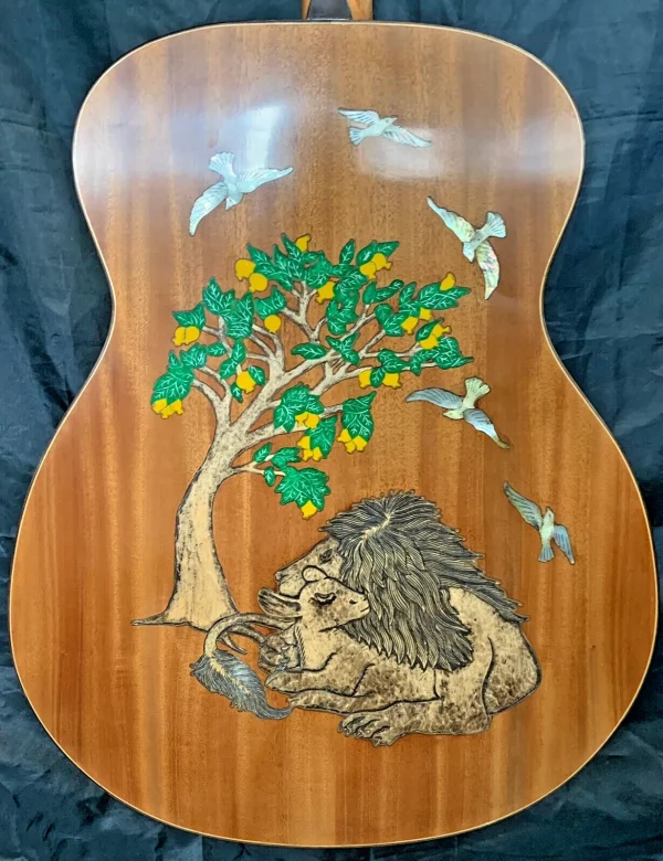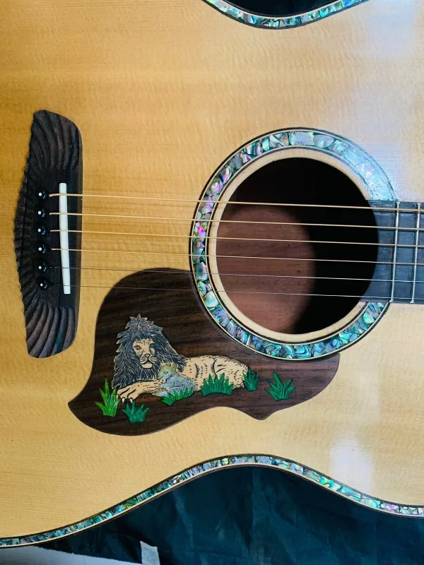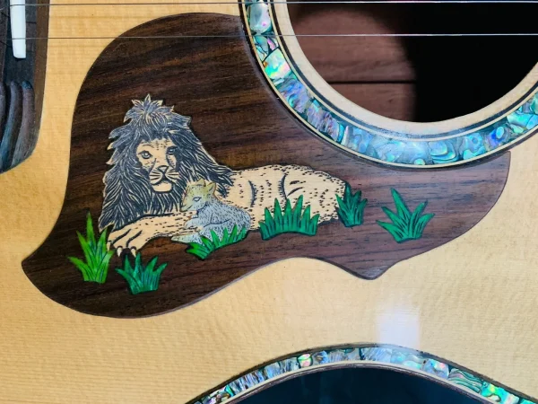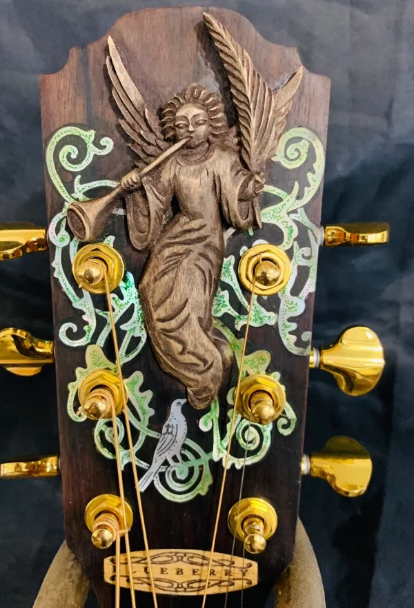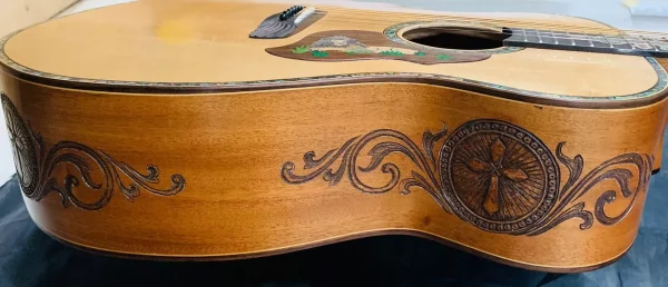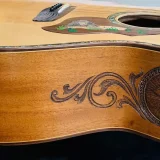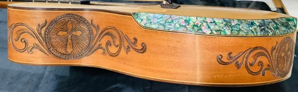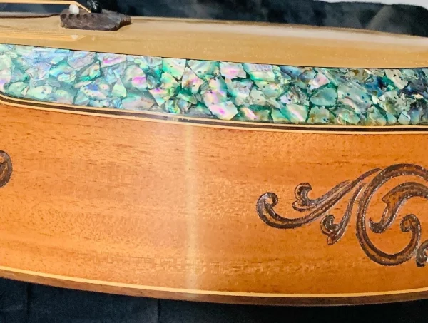 We can carve and inlay names, phrases and initials and we can even carve and inlay designs, faces and scenes from your photographs. Basically, if you can think of it we can get it onto your instrument.