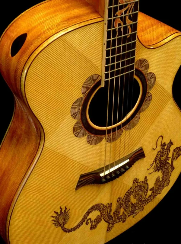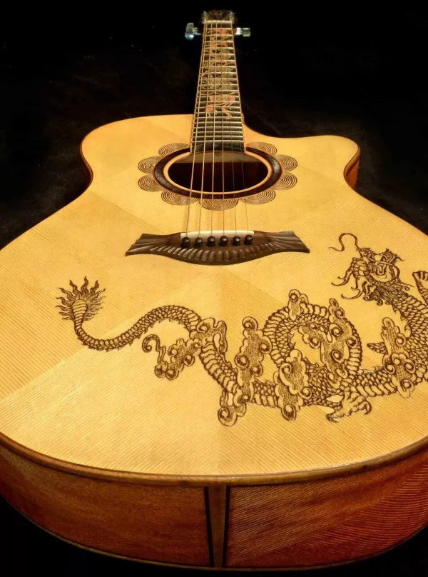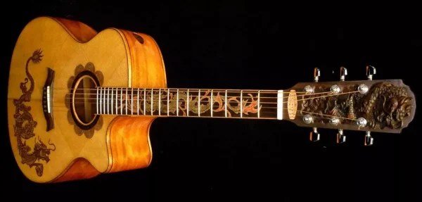 Blueberry Handmade Jumbo Size Acoustic Guitar Dragon Motif Pre-Order 90 Days