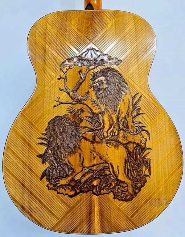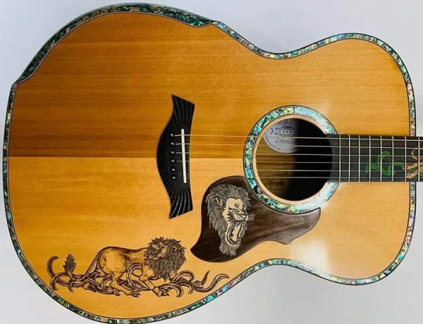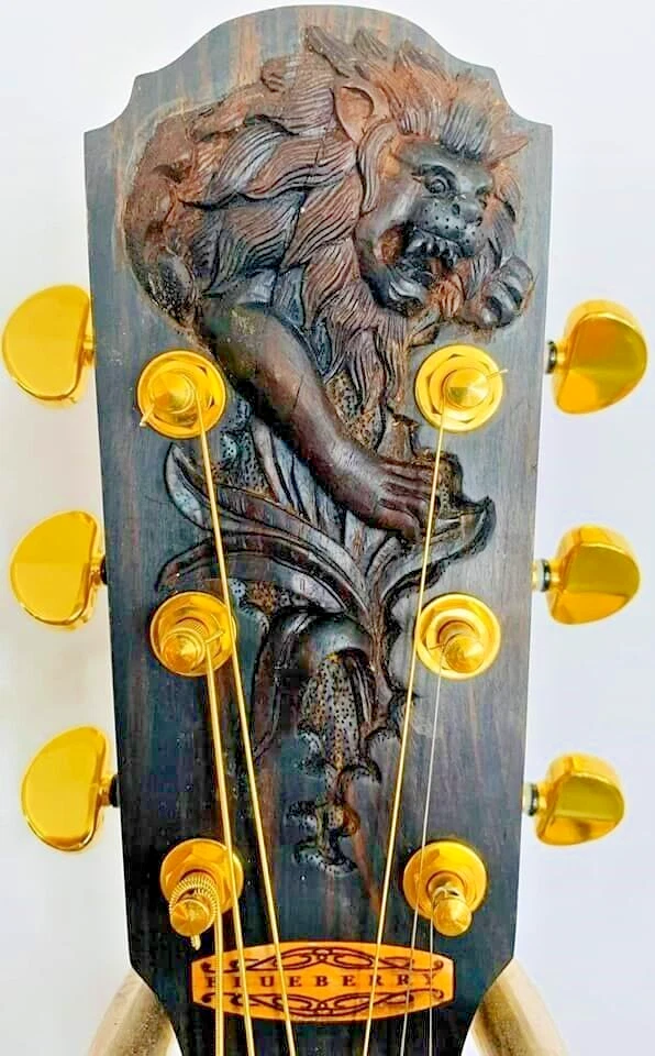 Blueberry Handmade Jumbo Size Acoustic Guitar Lions Motif Pre-Order 90 Days