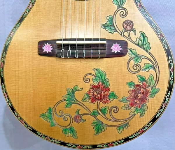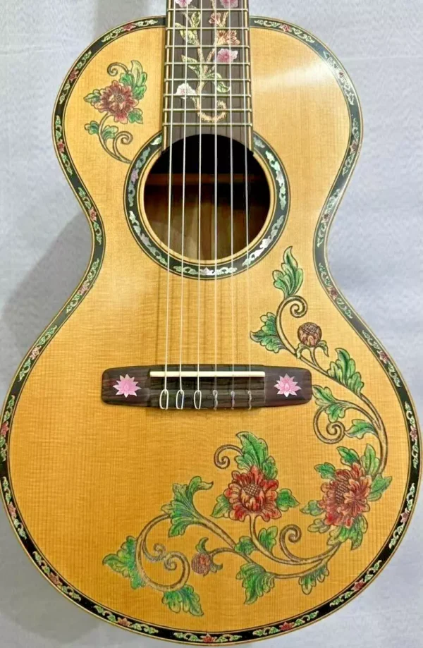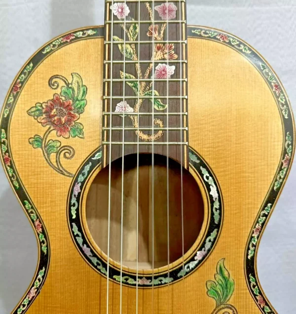 We can work with you to create a very special and personal guitar. Custom projects typically take from 12-16 weeks from conception to delivery. Payment is 50% at the beginning of each project and the balance payable just before delivery. We will provide artists drawings and photographs of the guitar’s progress as it is being built.