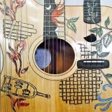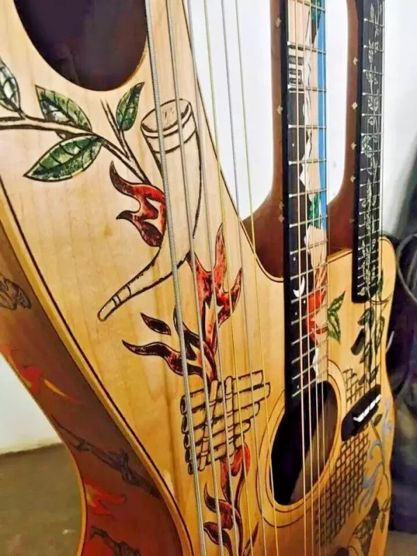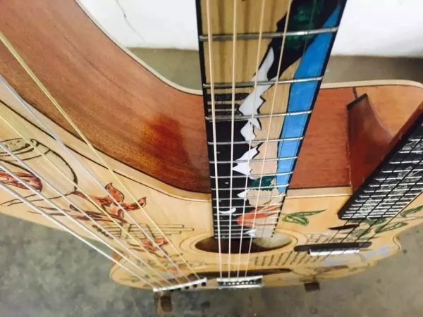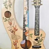 We can carve and inlay names, phrases and initials and we can even carve and inlay designs, faces and scenes from your photographs. Basically, if you can think of it we can get it onto your instrument.