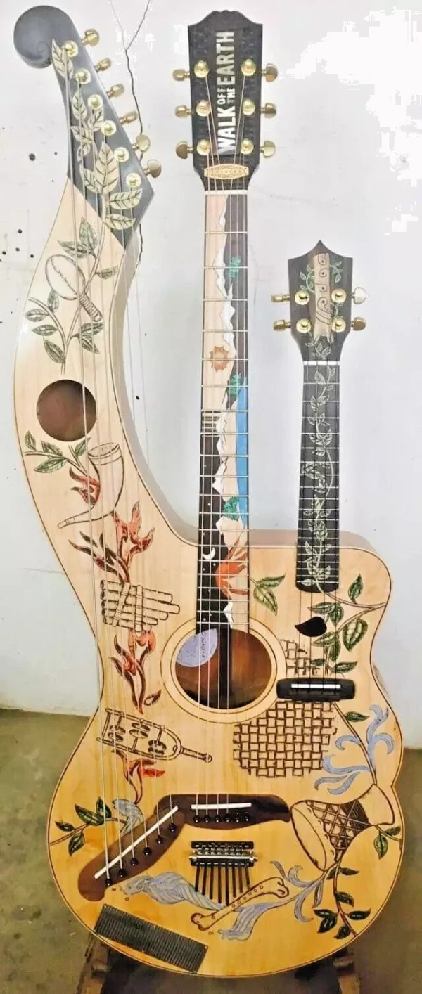 We built this very special guitar as a custom order for the popular Canadian band Walk-Off the earth and they have toured the world with it and have also recorded videos that have as of now been viewed over 30 million times.