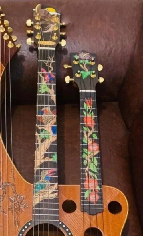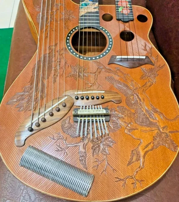 We can carve and inlay names, phrases and initials and we can even carve and inlay designs, faces and scenes from your photographs. Basically, if you can think of it we can get it onto your instrument.