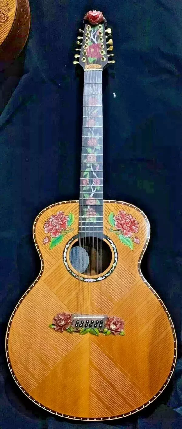 Blueberry Handmade Twelve String Acoustic Guitar Floral Motif Pre-Order 90 Days