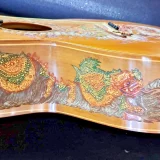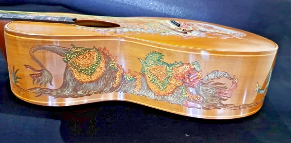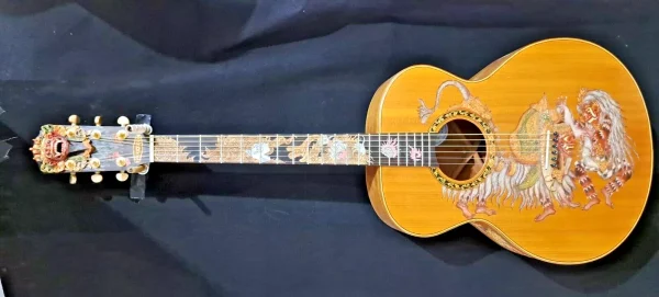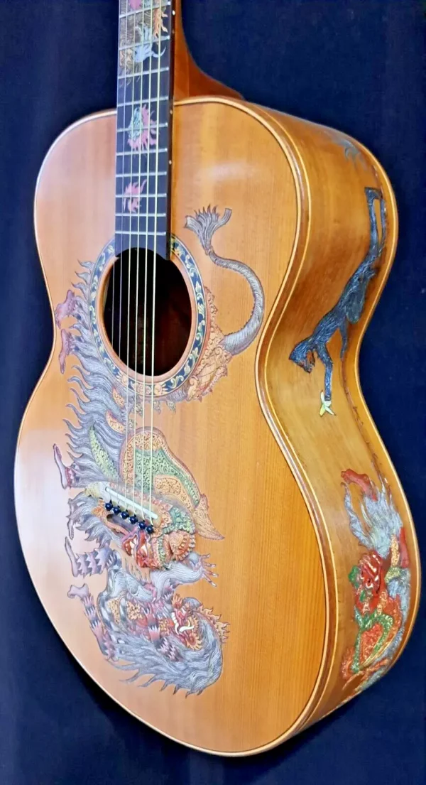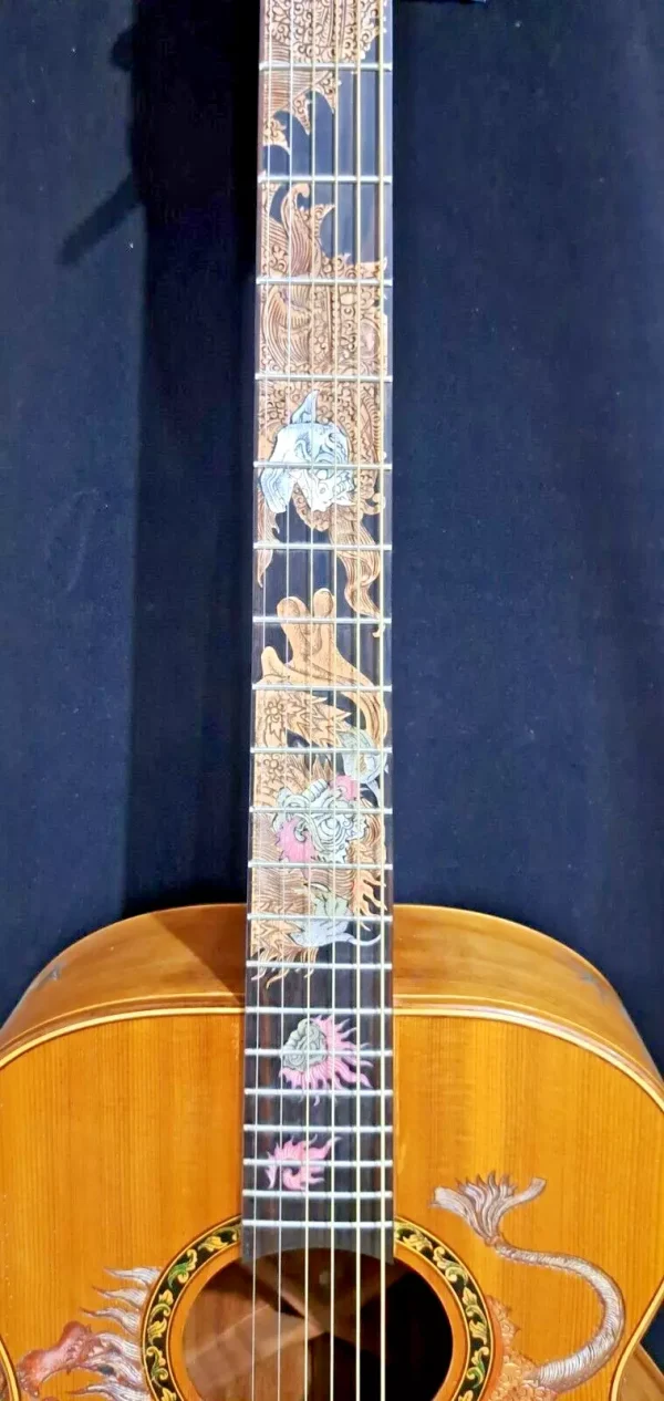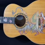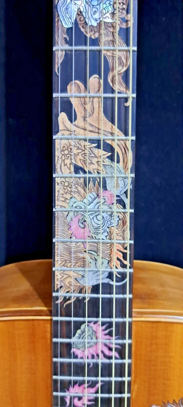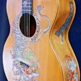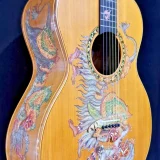 We can carve and inlay names, phrases and initials and we can even carve and inlay designs, faces and scenes from your photographs. Basically, if you can think of it we can get it onto your instrument.