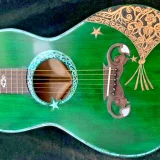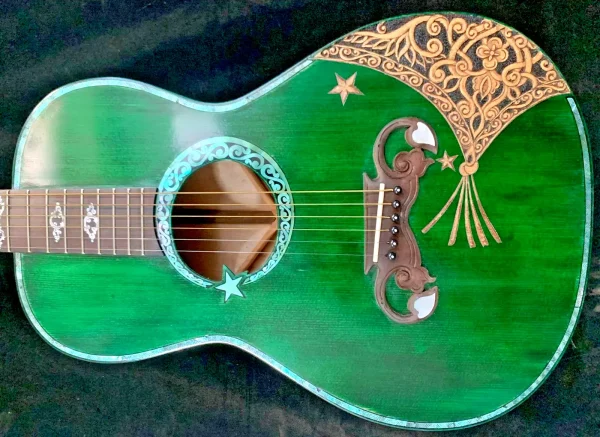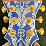 We can carve and inlay names, phrases and initials and we can even carve and inlay designs, faces and scenes from your photographs. Basically, we can get it onto your instrument if you can think of it.