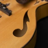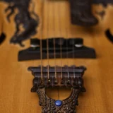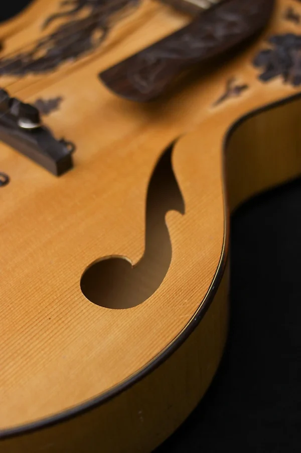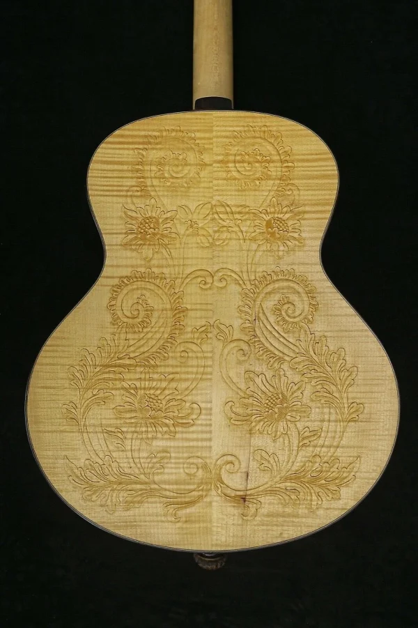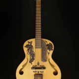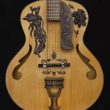 The Blueberry Archtop guitar in the photos is the first Blueberry Guitar we ever built, way back in 2005 – as you can see, there are some cracks – this was before we perfected our humidity control – the replica we will build for you will be perfect of course.