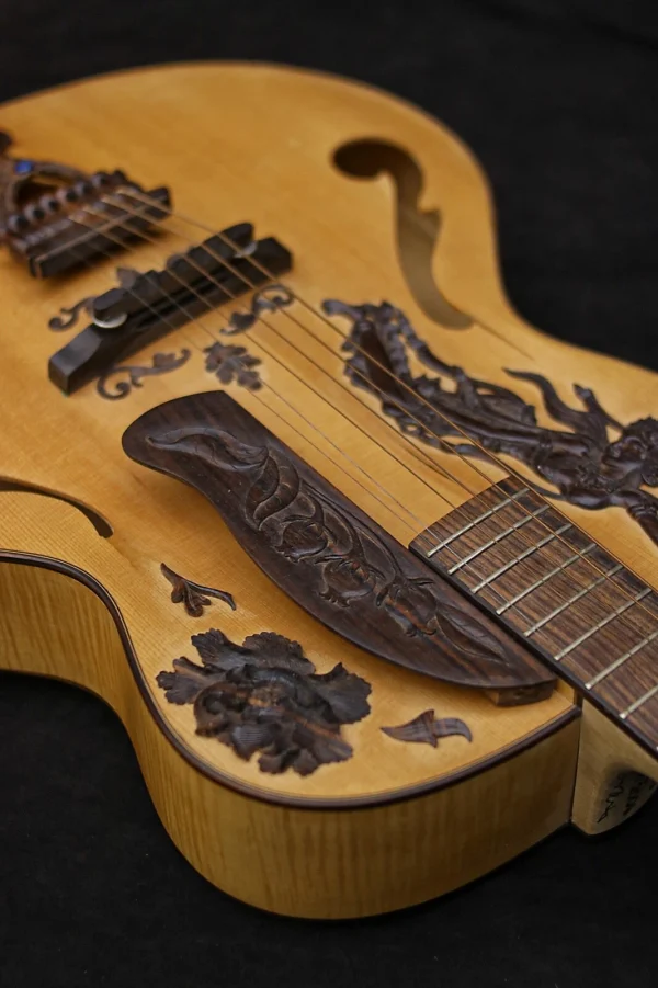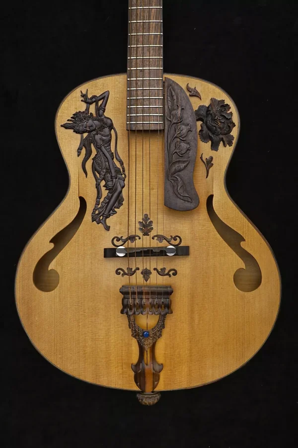 This means that we will reproduce exactly the same guitar using the same materials and specifications or we can make modifications such as dimensions, materials, motifs and even change it from a right handed to a lefty guitar based on your request.