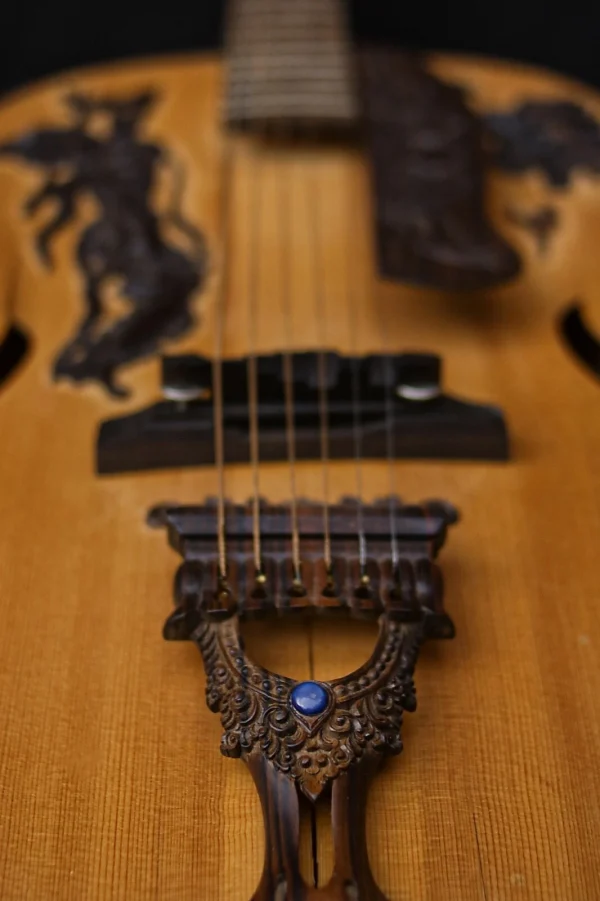 American luthier and educator George Morris and Balinese woodcarver Wayan Tuges brought together two great craft traditions, combining the best of Western technology with the best woodcarvers in the world.