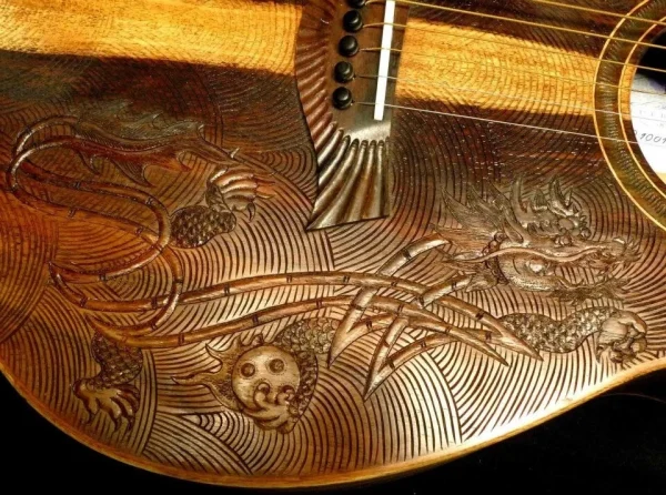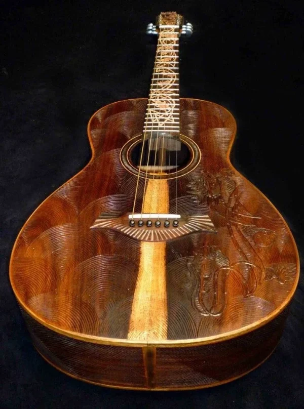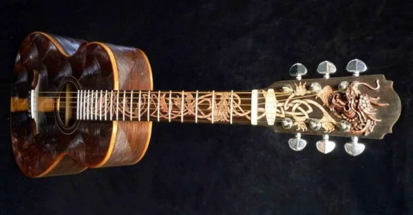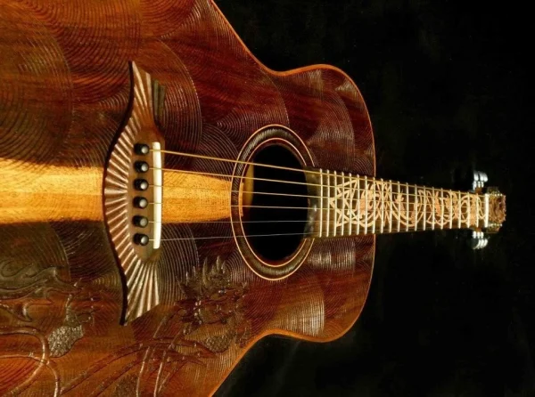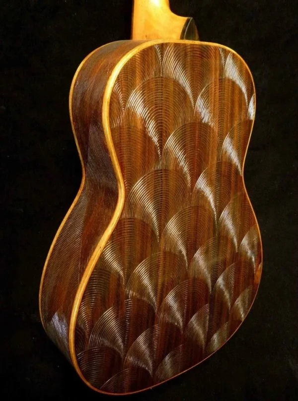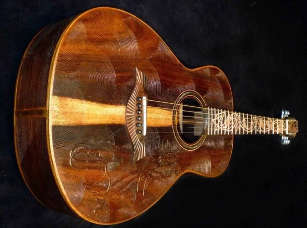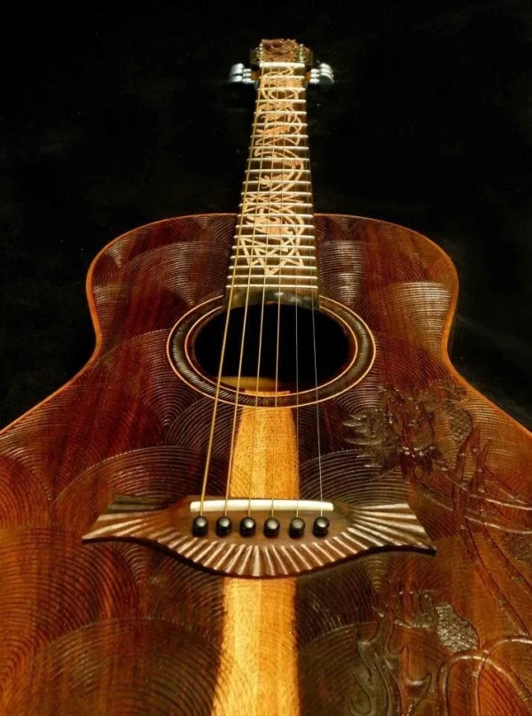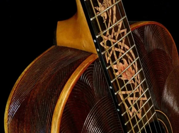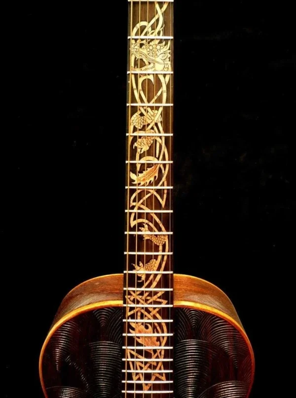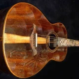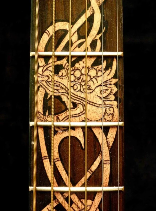 We can carve and inlay names, phrases and initials and we can even carve and inlay designs, faces and scenes from your photographs. Basically, if you can think of it we can get it onto your instrument.