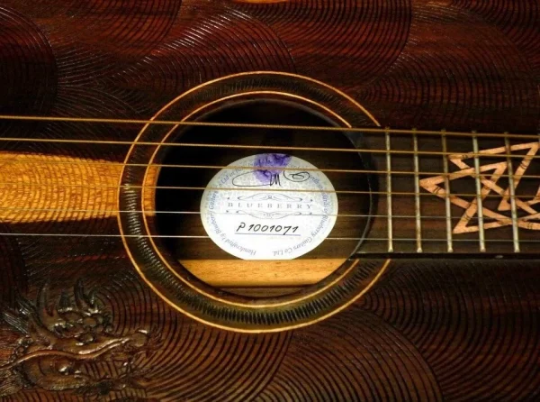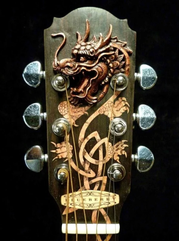 Parlor Size Acoustic Guitar Dragon Motif Handmade by Blueberry Pre-Order 90 Days